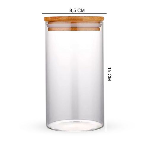 Pote Hermético Tampa de Bambu Para Alimentos Condimentos Temperos Cilíndrico 850ML
