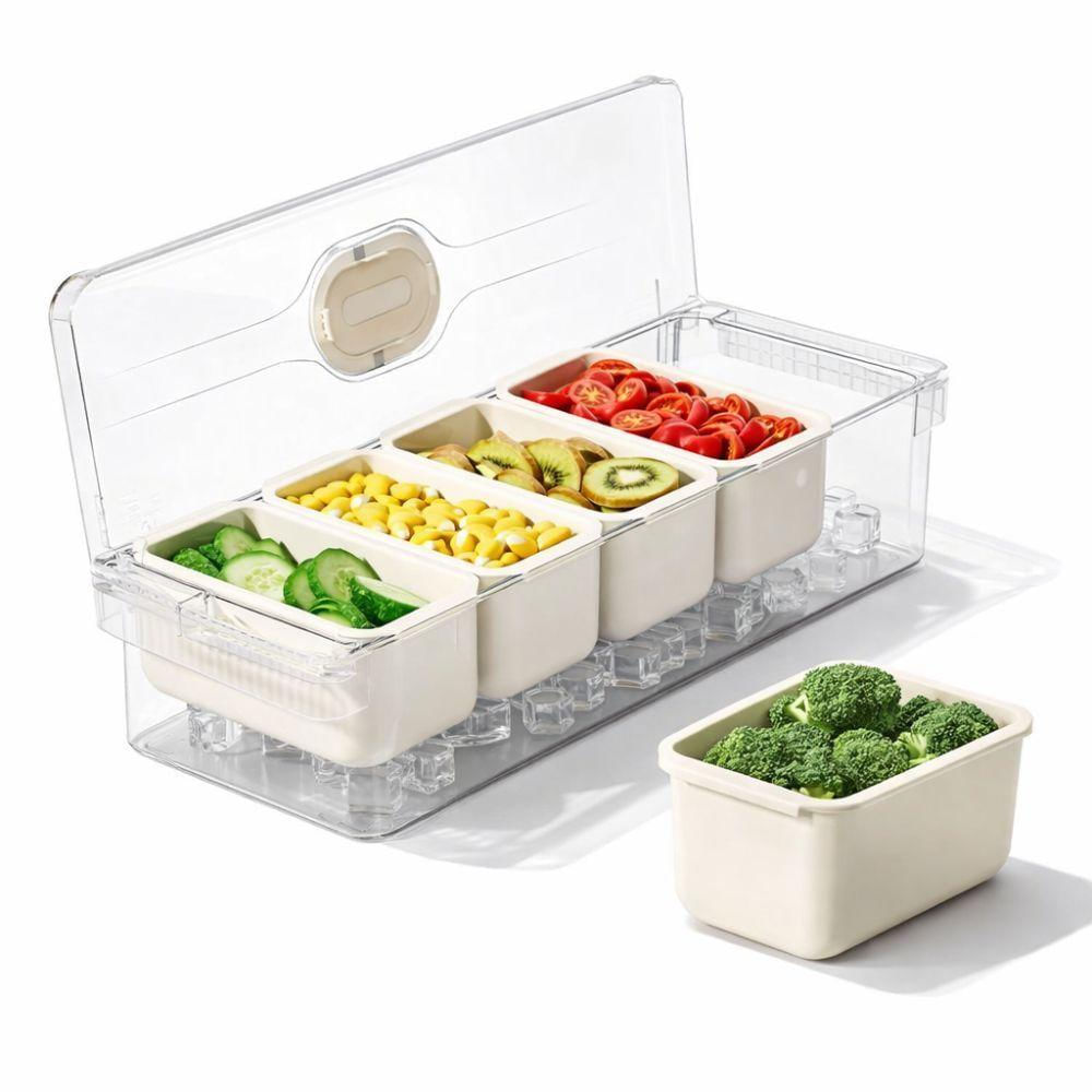 Pote Organizador Hermético com 5 Divisões De Acrílico Multiuso para Geladeira e CozinhaTransforme a organização da sua geladeira e da sua cozinha com o Pote Organizador Hermético com 5 Divisões, um conjunto prático, moderno e extremamente funcional para armazenar alimentos com mais higiene, frescor e visual impecável.Ideal para guardar legumes, frutas, carnes, grãos, cereais, temperos, biscoitos e alimentos em geral, esse organizador facilita a visualização, evita desperdícios e otimiza cada centímetro do espaço da sua geladeira, despensa, armários ou bancada.Fabricado em plástico resistente, livre de BPA e totalmente transparente, o pote permite identificar rapidamente o conteúdo sem precisar abrir, trazendo mais praticidade ao dia a dia. Sua tampa com vedação hermética impede a entrada de ar, umidade e odores, mantendo os alimentos frescos por muito mais tempo e evitando contaminações.O grande diferencial é o seu sistema de 5 divisões internas com escorredor, que permite separar diferentes tipos de alimentos no mesmo recipiente, facilitando a lavagem, drenagem e organização. Perfeito para quem busca praticidade, organização e cozinha inteligente.Além de alimentos, também pode ser utilizado para organizar itens de escritório, artesanato, utensílios, maquiagem e acessórios, tornando-se um organizador multiuso para toda a casa.Principais Benefícios:- Tampa com vedação hermética- 5 divisões internas para melhor organização- Sistema com escorredor para frutas, legumes e carnes- Material resistente, transparente e livre de BPA- Fácil de limpar, empilhar e transportar- Ideal para geladeira, despensa, cozinha e armários- Design moderno que valoriza a organizaçãoItens Inclusos:- 05 Potes- 01 Caixa com Tampa- 05 Colheres- 01 Pegador de GeloEspecificações Técnicas:- Dimensões: 42,5 cm (comprimento) x 14,5 cm (largura) x 11,5 cm (altura)- Material: Plástico resistente- Peso: 895 g- Cor: TransparenteConteúdo: 01 Conjunto com 12 peças de potes herméticos
