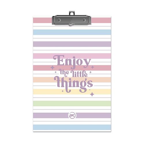 A Prancheta de Anotações Versátil A5 Dac Enjoy possui o tamanho ideal para organizar suas anotações e lembretes diários para que não esqueça de nenhum compromisso. A opção de pendurar é ótima para não perder de vista o planejamento. Com formato A5 (15,5x23cm), a p rancheta cabe na bolsa para levar em qualquer lugar. É plastificada e decorada, tem prendedor de metal com suporte retrátil para pen durar e acompanha 12 folhas para anotações.