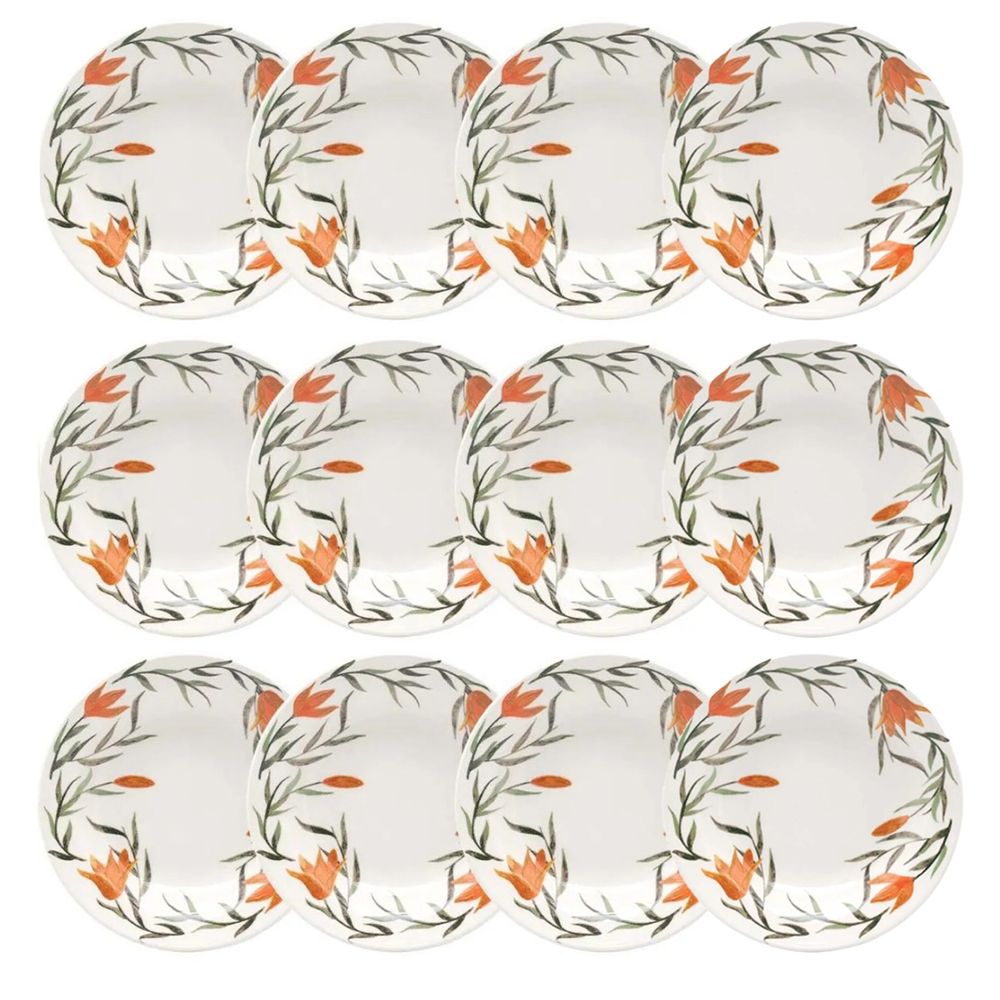 Prato Fundo de Cerâmica Donna Lírios 21,5cm 12 Unidades - Biona 5410