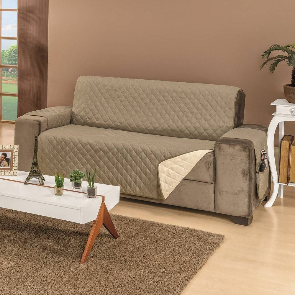 - Protetor De Sofá Dupla Face Manu 2 E 3 Lugares King - Cáqui/Palha