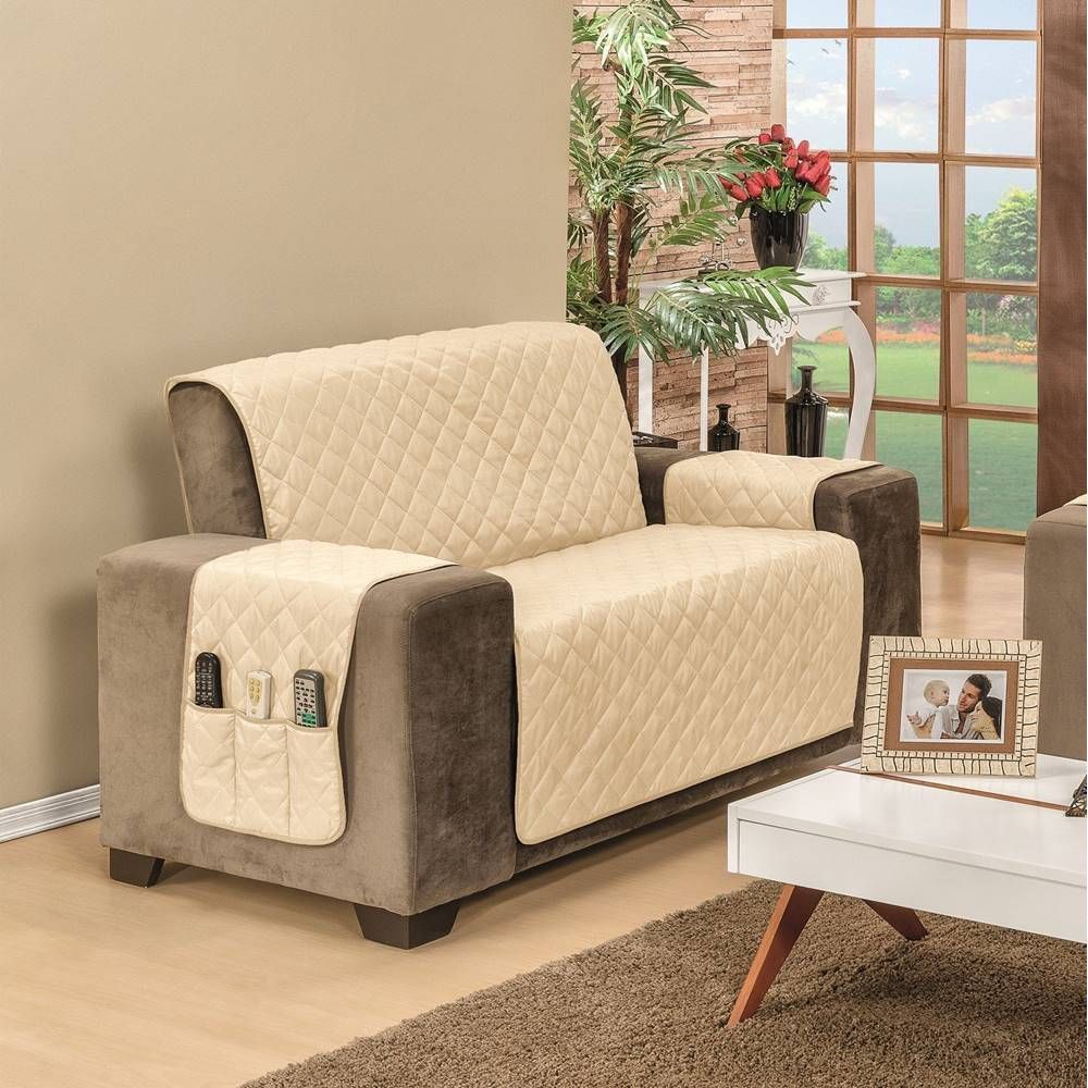 - Protetor De Sofá Dupla Face Manu 2 Lugares - Cáqui/Palha