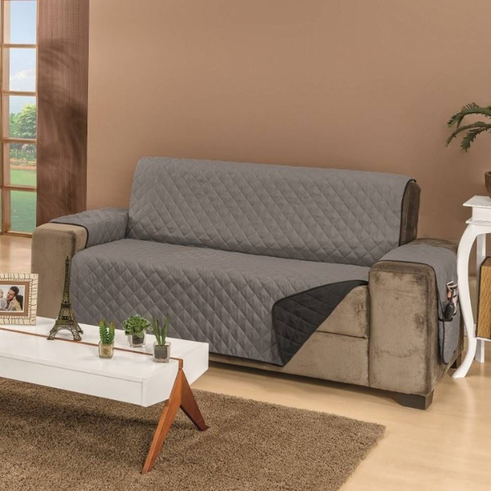 - Protetor De Sofá Dupla Face Manu 3 Lugares - Preto/ Cinza