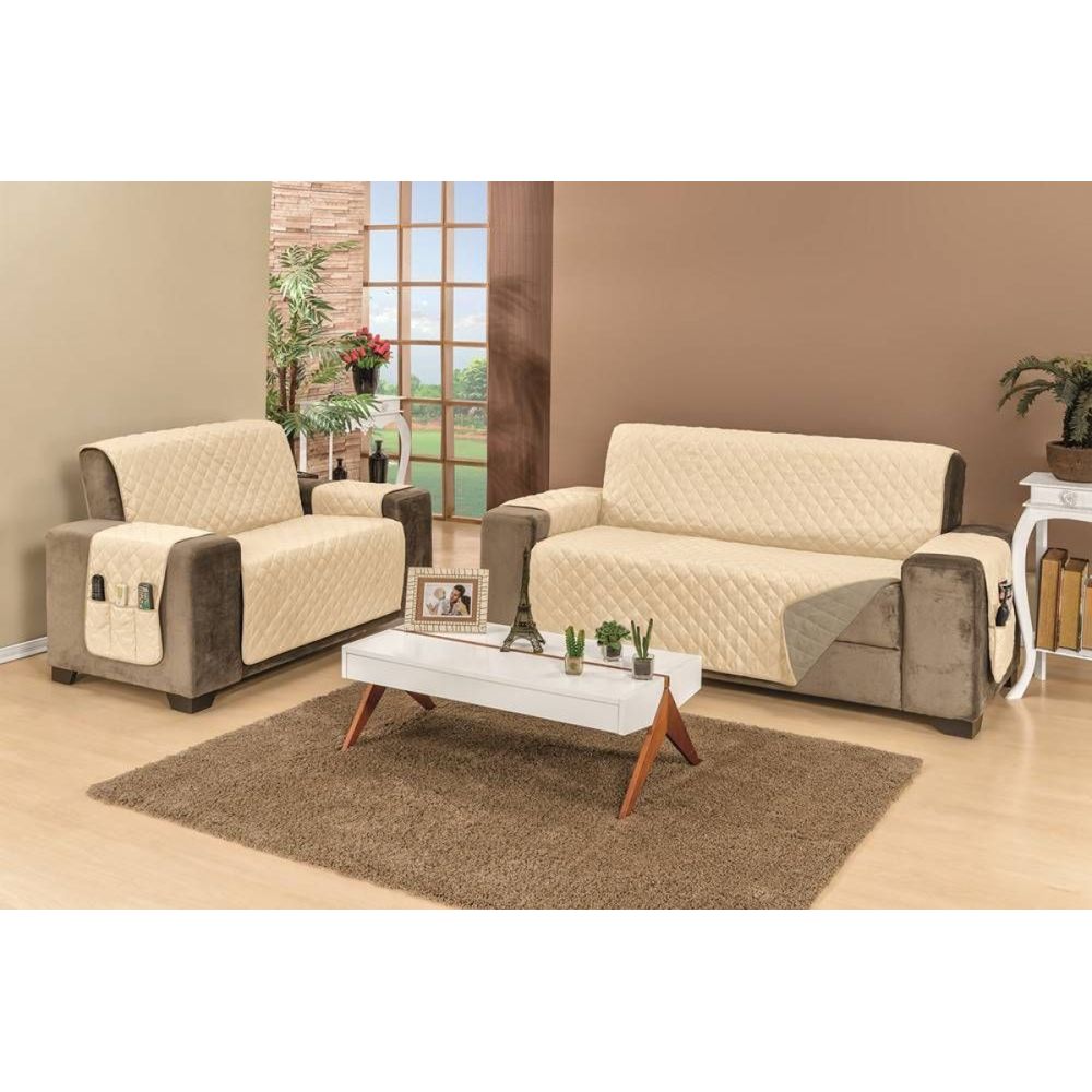Confeccionado com tecido superior e inferior 100% microfibra, enchimento em 100% poliéster e com acabamento em viés, agora a qualidade e o conforto do seu sofá estão garantidos. Matelado em formato de losangos, tamanho 5x5, o tecido do seu protetor fica mais firme, trazendo sofisticação, beleza e conforto ao seu sofá. Além disso, outra grande vantagem deste lindo protetor é que ele é “dois em um”, pois ele possui dupla face e pode ser usado dos dois lados, com cada lado de uma cor, para você poder variar ainda mais o visual do seu ambiente, sempre que quiser. Cada protetor possui porta objetos em um dos braços do sofá, podendo ser utilizado nas duas faces. Além disso, o protetor garante alta proteção ao seu sofá, conservando-o muito mais, por um tempo prolongado.
