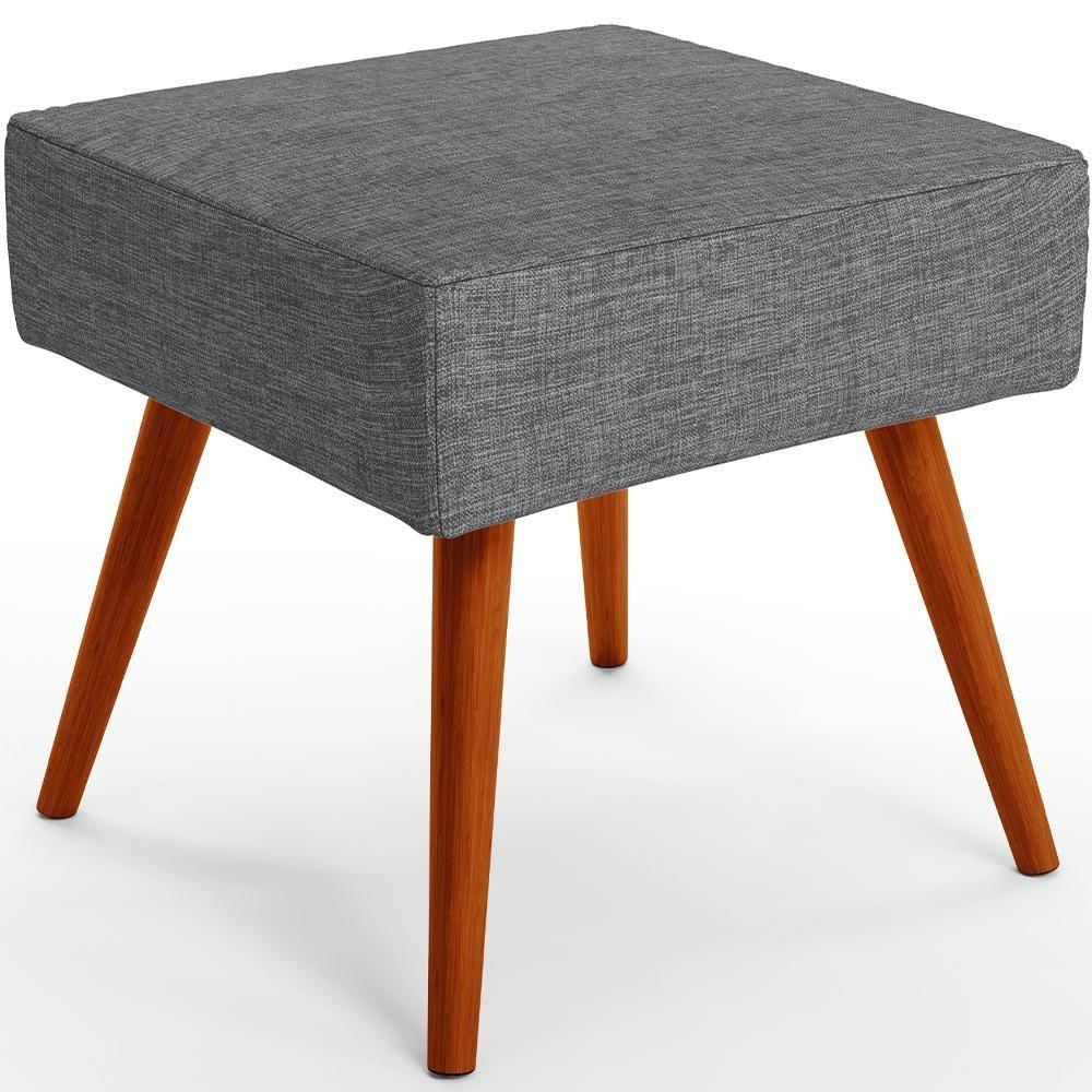 Puff Banqueta Decorativa Com Pés Palito Lívia W01 Linho Cinza Escuro - Lyam Decor