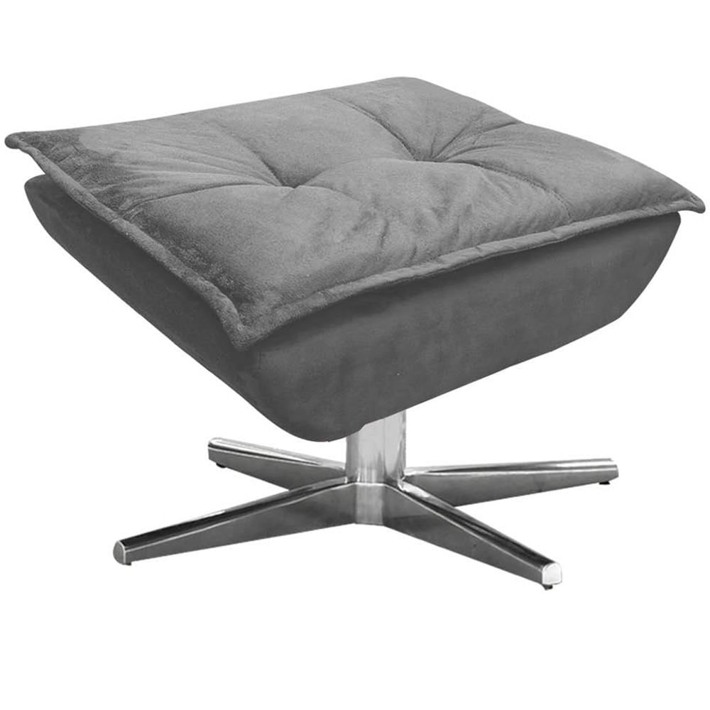 Puff Decorativo Base Giratória Cromada Charger Suede Grafite - Gran Belo