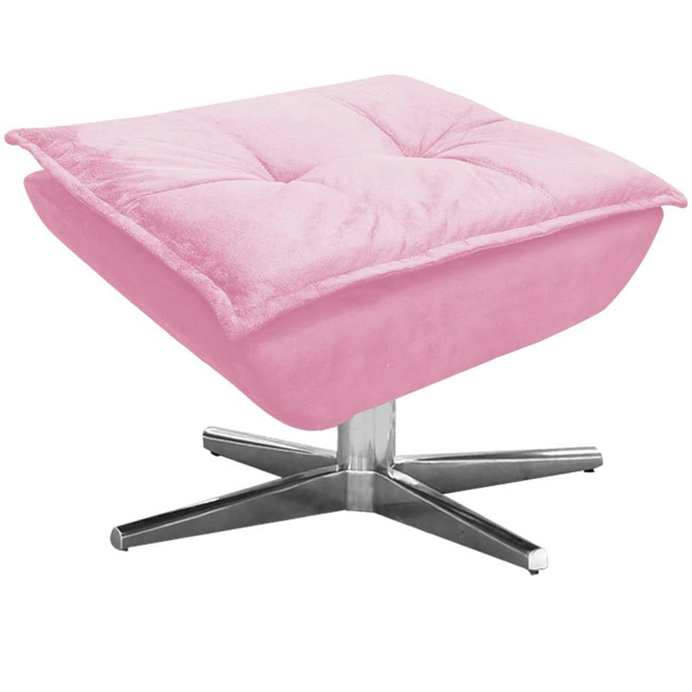 Puff Decorativo Base Giratória Cromada Charger Suede Rosa - Gran Belo
