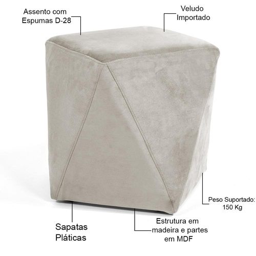Puff Decorativo Para Sala de Estar Ametista D02 Veludo Bege C-309 - Lyam Decor