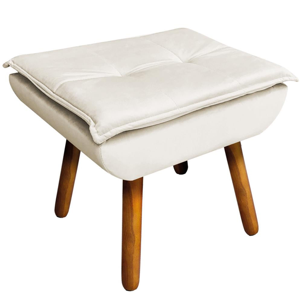 Puff Decorativo Pés Palito Charger Veludo Bege - Gran Belo