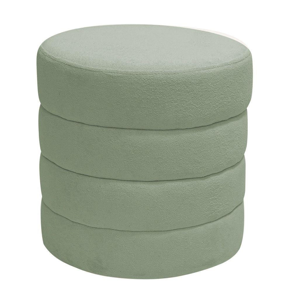 Puff Decorativo Redondo Mid Bouclé Verde Claro - Nexta Casa