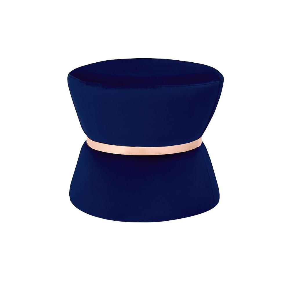 Puff Decorativo Sala de Estar 45cm Dhaka Veludo Azul Bic - Gran Belo