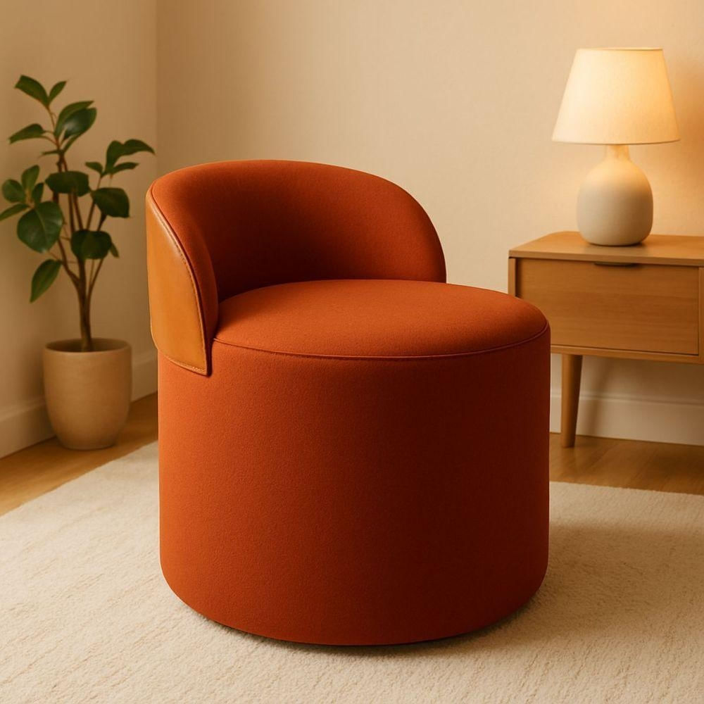 Puff Encosto Corino Redondo Suede Sala Penteadeira Quarto terracota