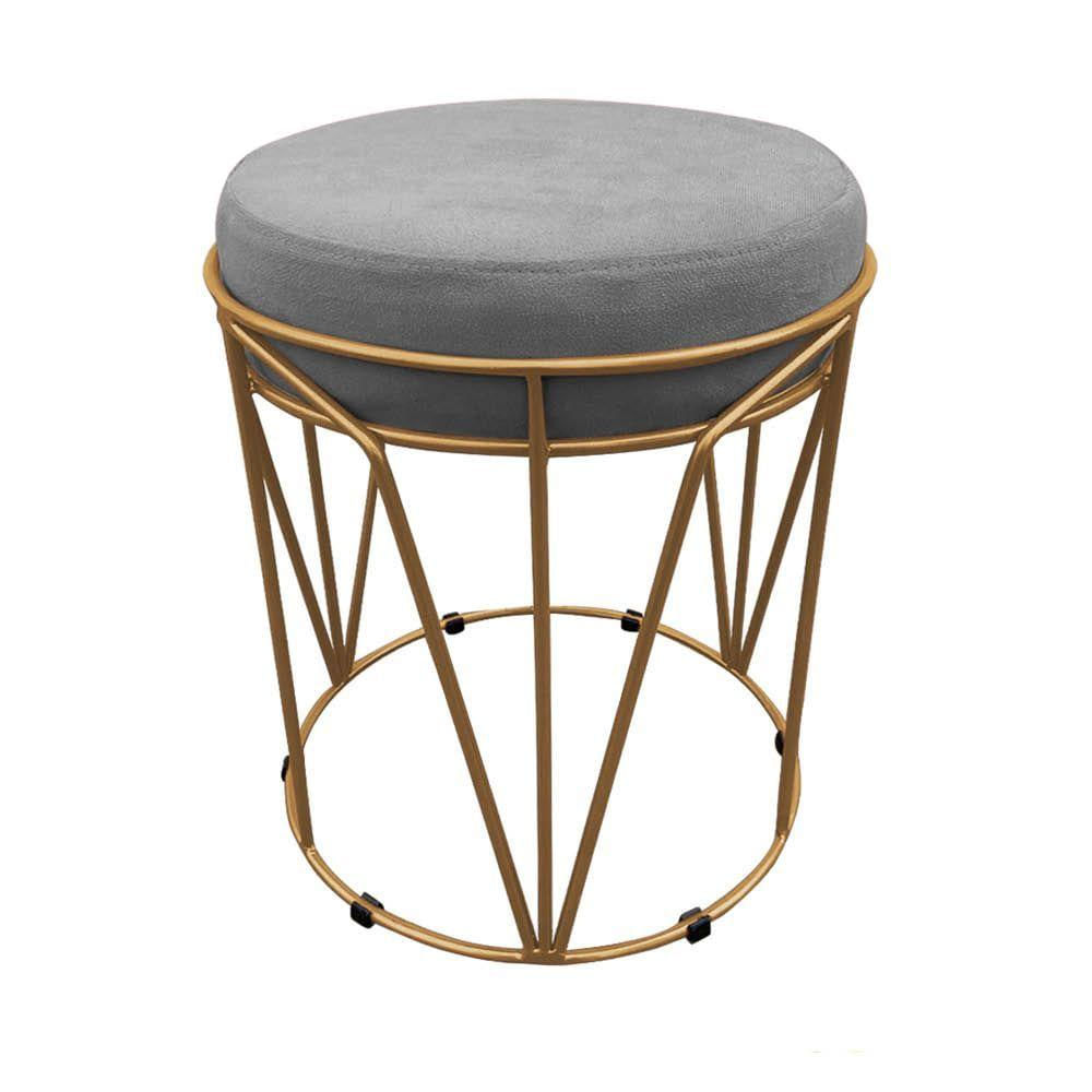 Puff Multiuso Com Mesa Babu 2 Em 1 Suede Grafite Base Dourado - D'rossi