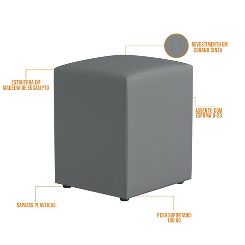 Puff Quadrado Decorativo L02 Sala de Estar Corano Cinza - Lyam Decor