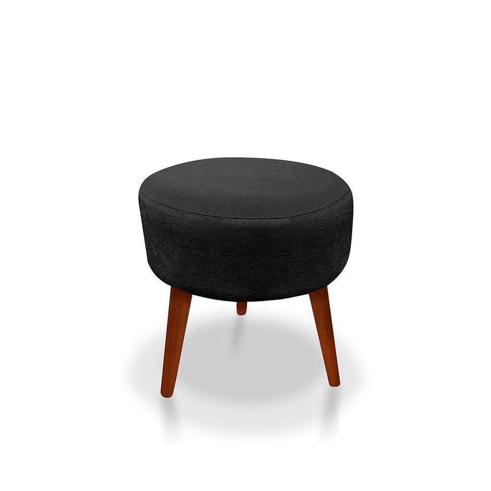 Puff Redondo Decorativo Panqueta De Apoiar Os Pés Suede Preto