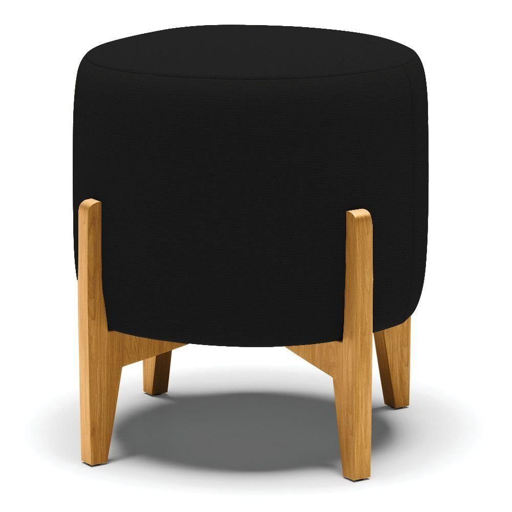 Puff Stella Linho Preto A79 Base Madeira Castanho - D'rossi