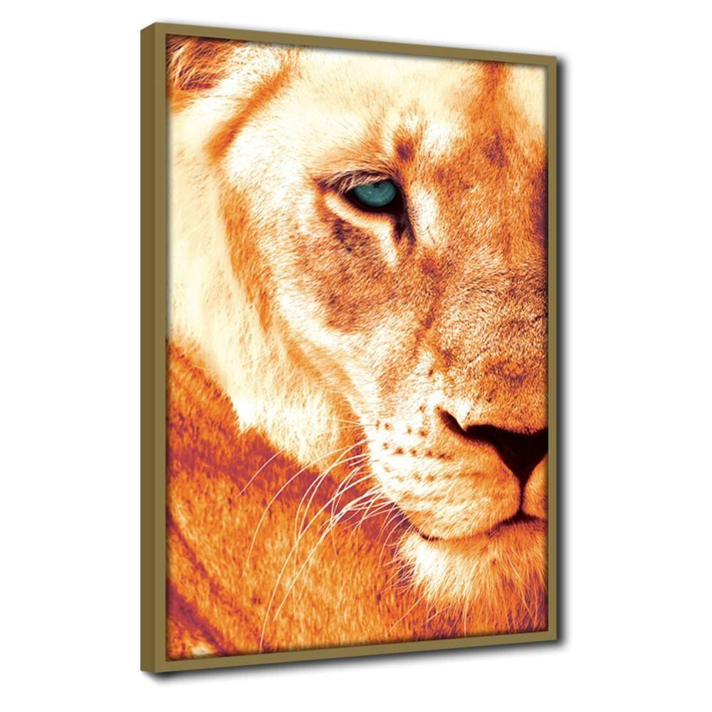 Quadro Decorativo Textura Cx Alta Leoa Cores 1 Pç 40x60 Titulo Leoa Laranja Moldura Caqui