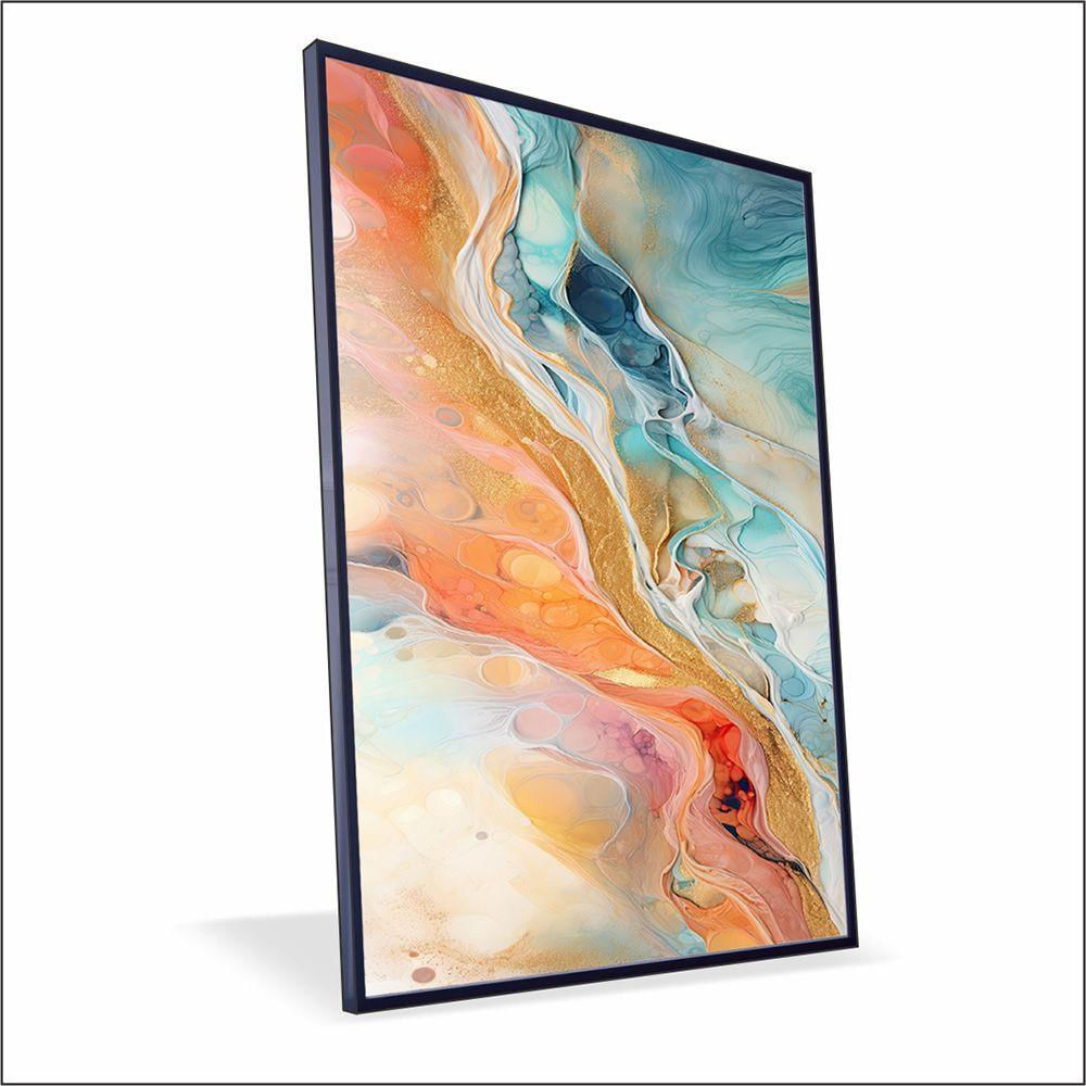 Quadro Marmorizado Salmão Canvas Sem Vidro Tamanho-moldura 40x30 Filete Cor Preta