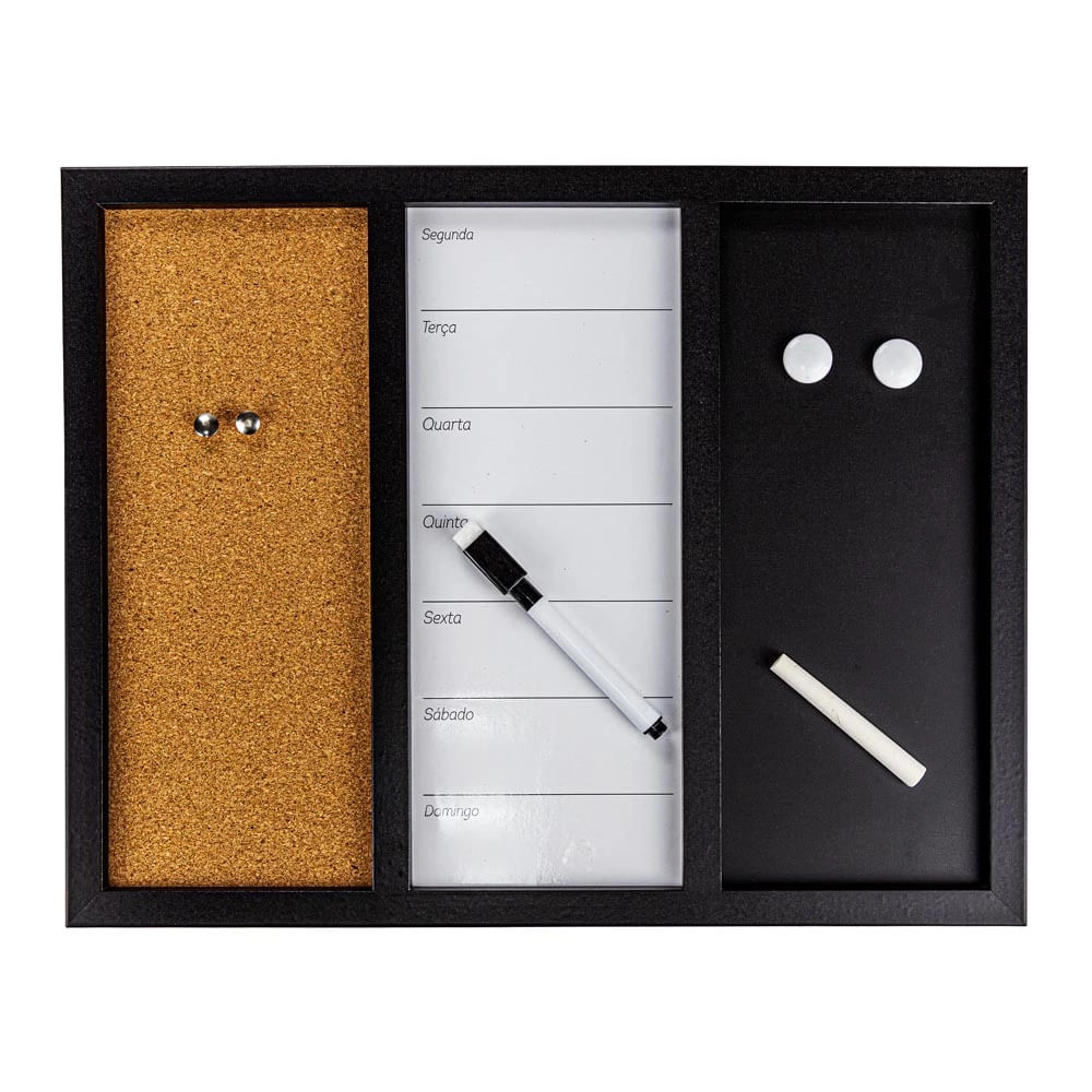 Quadro Magnético Bc Visão Mês com Cortiça, Board, Porta Chaves, Ímãs, Marcador e Alfinetes 38x30cm
