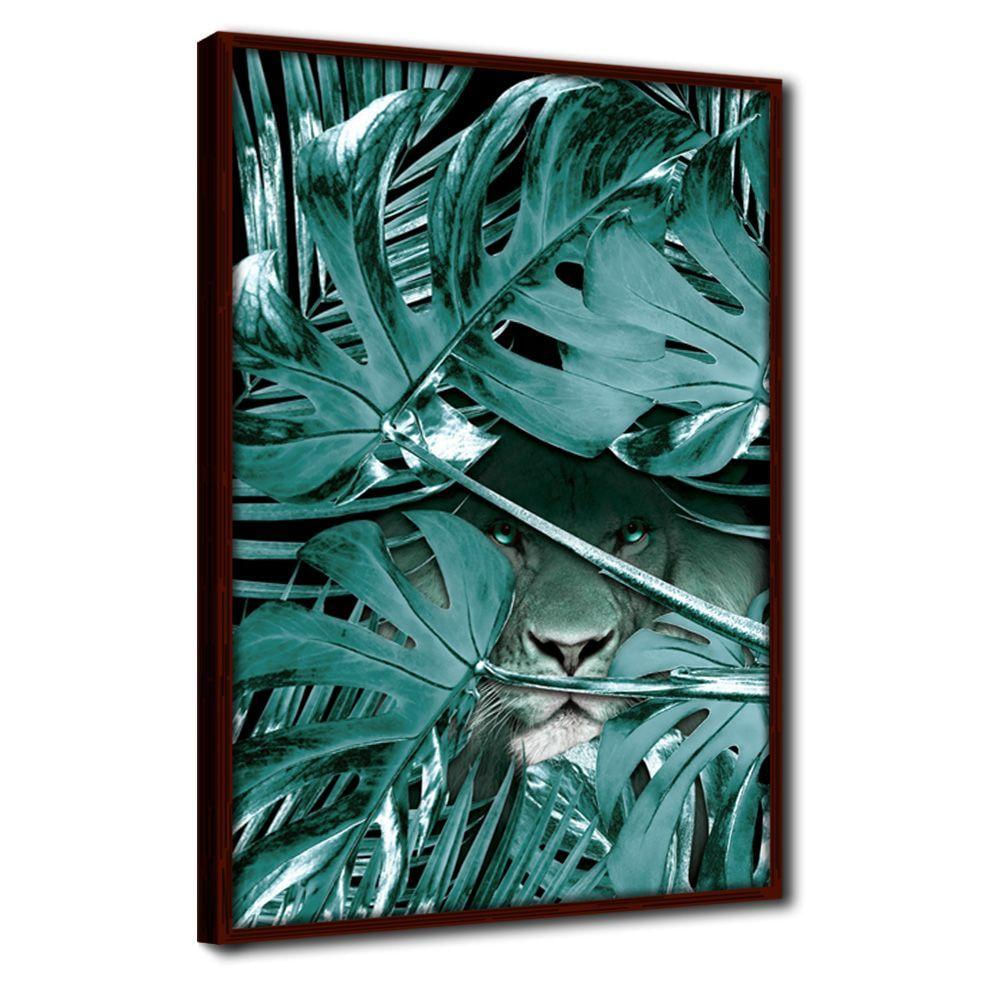 Quadro Textura Cx Alta Leão Na Floresta Esverdeado 40x60 Leão Na Floresta Esverdeado Moldura Madeira