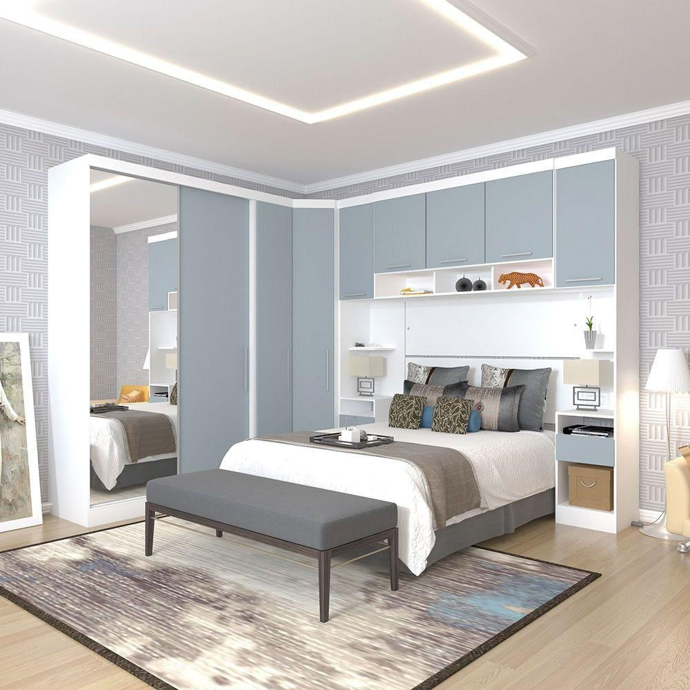 Quarto Com 6 Módulos Com Espelho E Cabeceira Alpes Luciane Branco Pf-grey Sky Pf