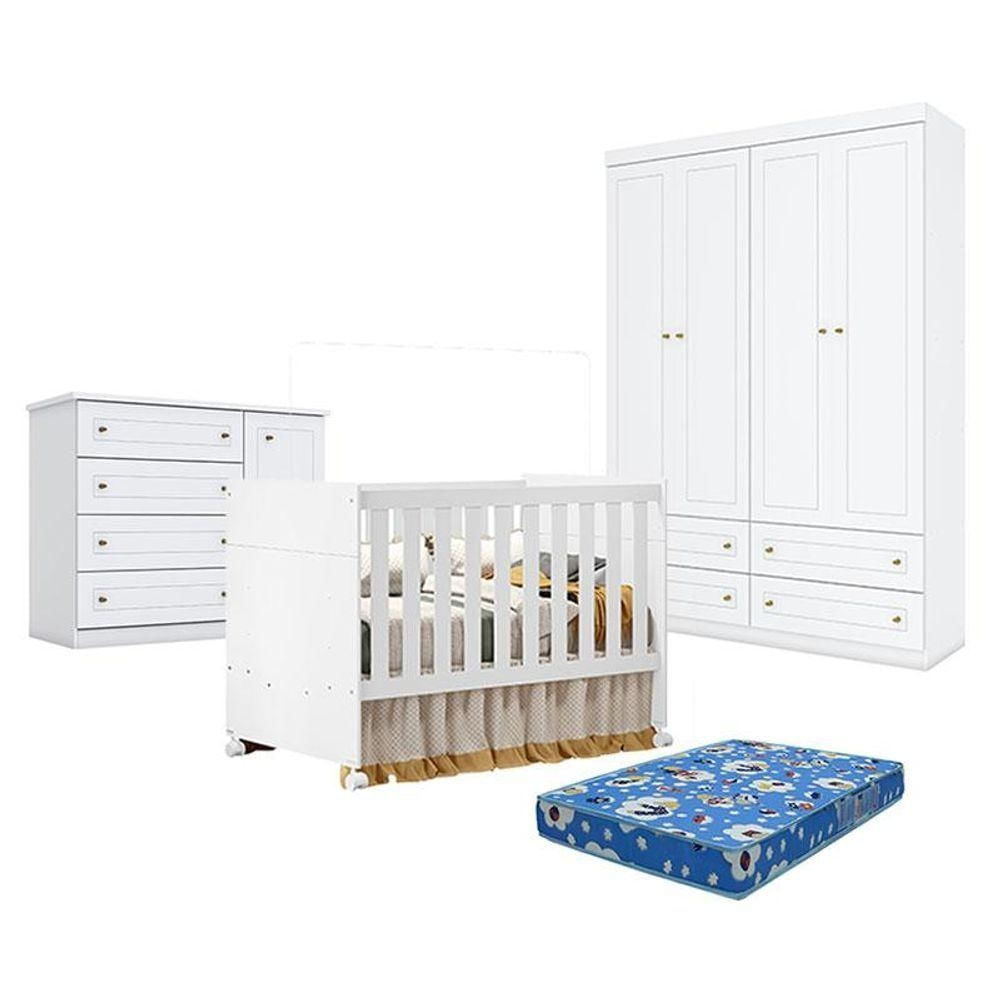 Quarto De Bebê Americano 4 Portas Com Berço Americano Katatau Branco Acetinado - Reller - Henn E Colchão Ortobom