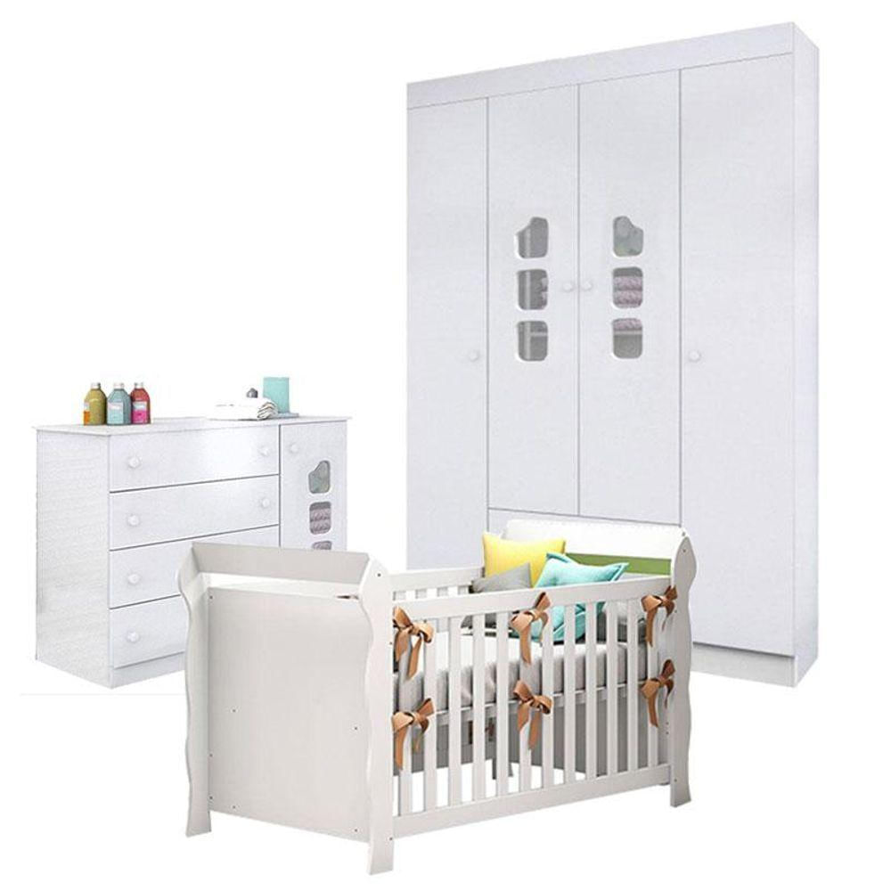 Quarto De Bebê Lívia Com Berço Americano Lara Branco Brilho - Phoenix