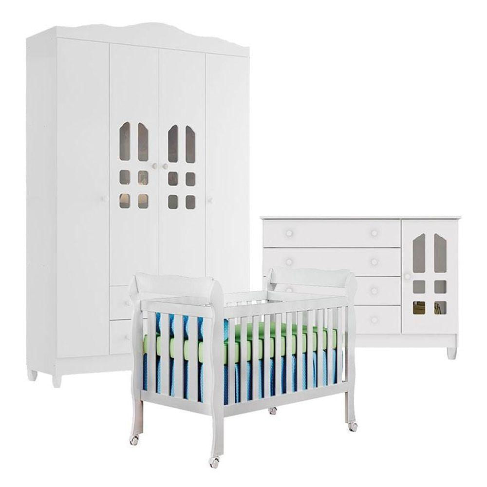 Quarto De Bebê New Selena 4 Portas Com Berço Lila E Cômoda Gran Selena Branco Brilho