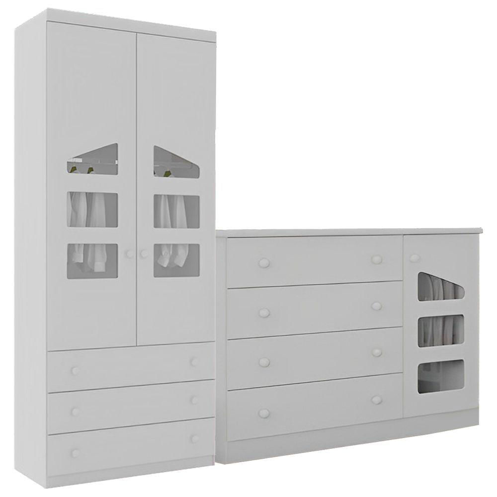 Quarto Infantil Com Guarda Roupa 2 Portas E Cômoda 4 Gavetas E 1 Porta Eloísa - Phoenix Baby