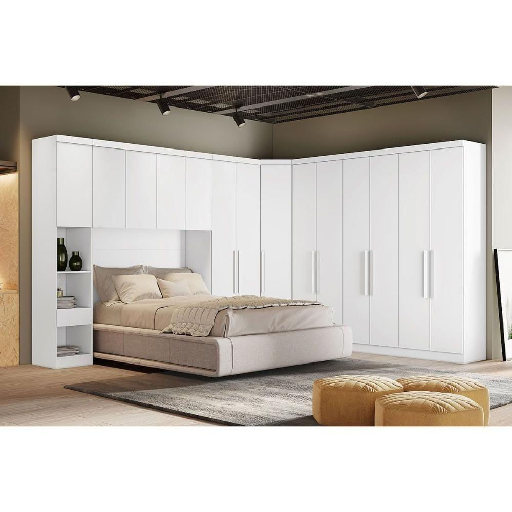 Quarto Modulado Rizon 5 Peças (1 Armário Ponte + 1 Closet + 2 Guarda Roupas + 1 Complemento) Qc204 Neve - Novo Horizonte