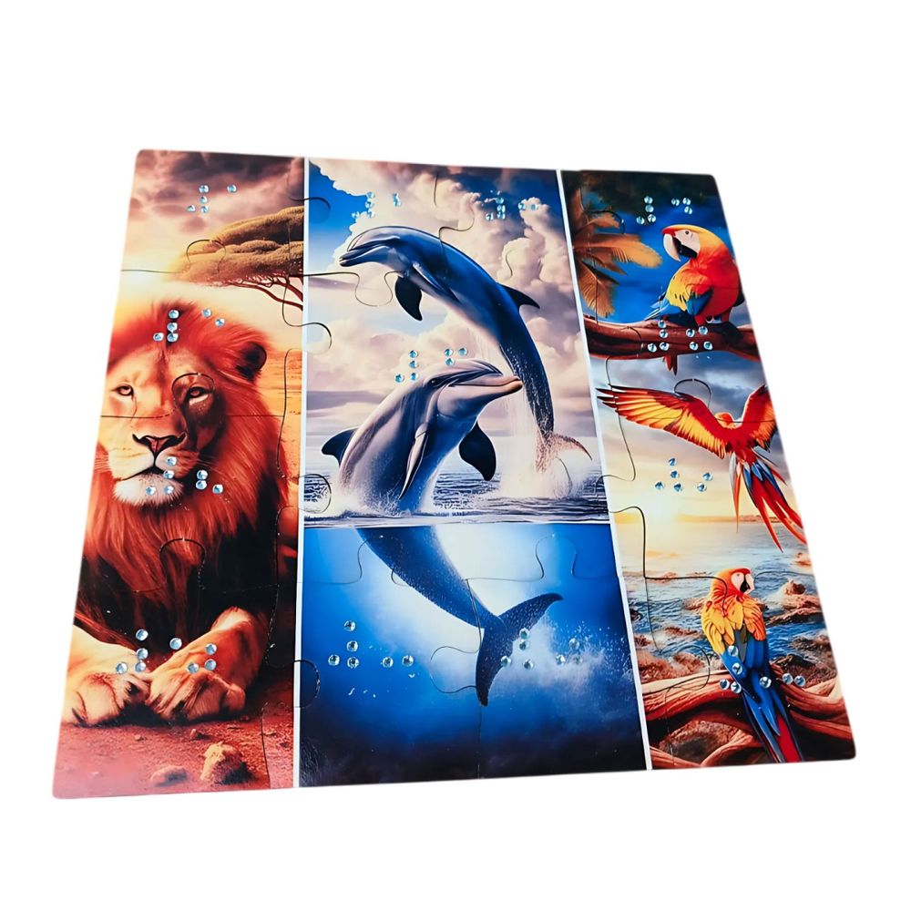 Quebra-cabeça em Braile alto relevo com strass de 13 peças