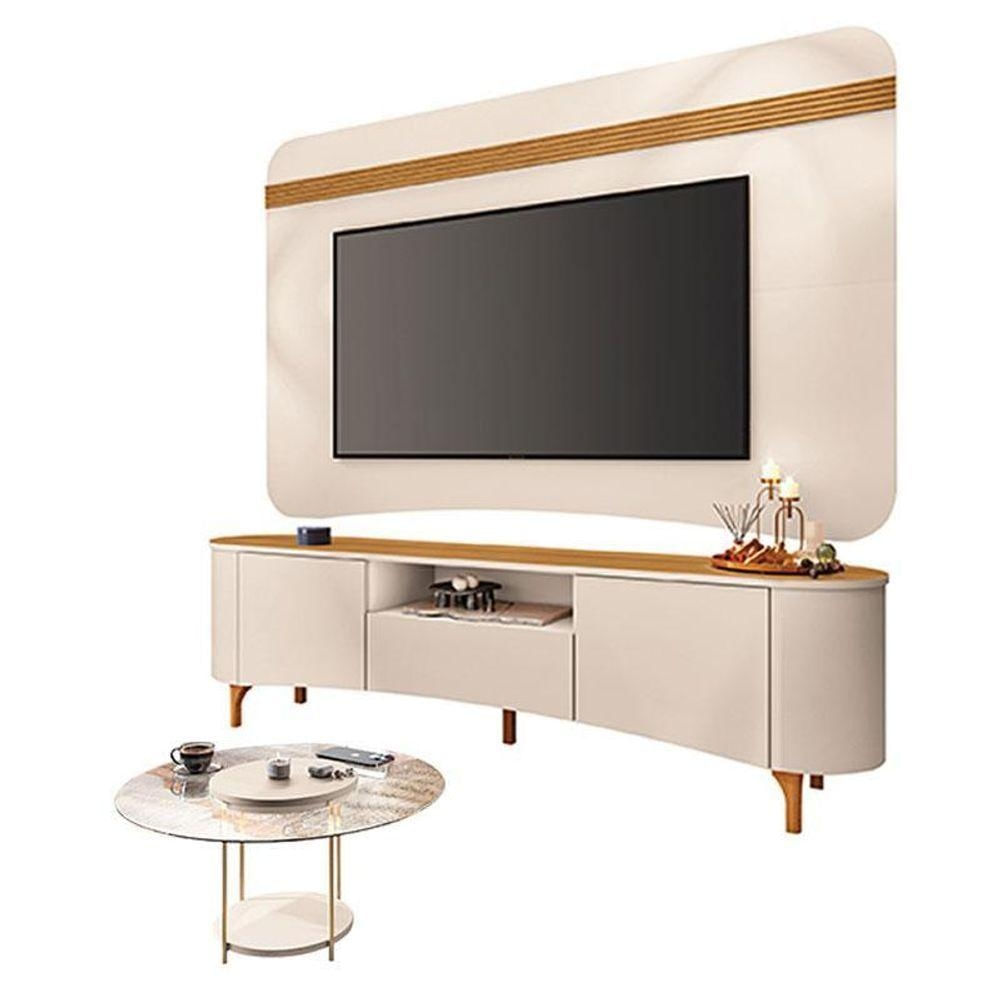 Rack Bancada Elara e Painel Armony Off White Cinamomo com Mesa de Centro Sky Com tampo de vidro Off White - HB MóveisTransforme sua sala de estar em um ambiente sofisticado, organizado e moderno com o Rack Bancada Elara e Painel Armony Off White Cinamomo com Mesa de Centro Sky com tampo de vidro Off White - HB Móveis. Esse conjunto combina funcionalidade e design contemporâneo, oferecendo o equilíbrio perfeito entre estilo e praticidade.Rack Bancada Elara Off White Cinamomo - HB MóveisCaracterísticas técnicas: - Ideal para TV de até 80' - Tampo com espessura de 18mm - Portas com dobradiças laterais e formato curvo - Gaveta central com corrediças telescópicas - Pés de madeira maciça com design exclusivo e acabamento envernizado - Produzida em MDP e MDF de 25mm e 15mm;Dimensões: Altura:57,5cm Largura:201cm Profundidade:42,5cmPainel Armony Off White Cinamomo - HB MóveisCaracterísticas técnicas: - Projetado para TV de até 80’ - Detalhe canelado, com ondas suaves que adicionam textura ao painel; - Estrutura reforçada para fixação de TV's de grandes formatos, - Produzido em MDP e MDF de 25mm e 15mm;Dimensões: Altura:132cm Largura:200cm Profundidade:3cmMesa de Centro Sky com Tampo de Vidro Off White – HB MóveisCaracterísticas Técnicas: - Tampo de vidro 6mm - MDF 15 mm - Pés em aço maciço 3/8 com acabamento em tom dourado - Tampo em mdf - Lindo design Dimensões: Altura: 35 cm Largura: 70 cm Profundidade: 70 cmInformações importantes: - Não acompanha decorações e acessórios - Nossas cargas possuem seguro, portanto, no ato da entrega, confira a quantidade de volumes recebida, e também o estado da embalagem. Se houver qualquer inconsistência, não assine o comprovante de entrega; - O armazenamento do produto no endereço de entrega é de responsabilidade do comprador. Evite apoiar o produto na vertical, bem como evite áreas que deixem o produto exposto a chuva ou umidade excessiva; - Pequenas variações de tonalidade são possíveis, em razão da diferença de resolução da tela onde o anúncio está sendo visualizado. Se notar diferença expressiva, comunicar a empresa antes de efetuar a montagem; - O serviço de entrega contratado contempla a entrega até a primeira área coberta ou portaria, não sendo coberto o ato de subir escadas/elevadores ou adentrar nas residências; - Não nos responsabilizamos pela montagem, desmontagem ou instalação do produto. NA