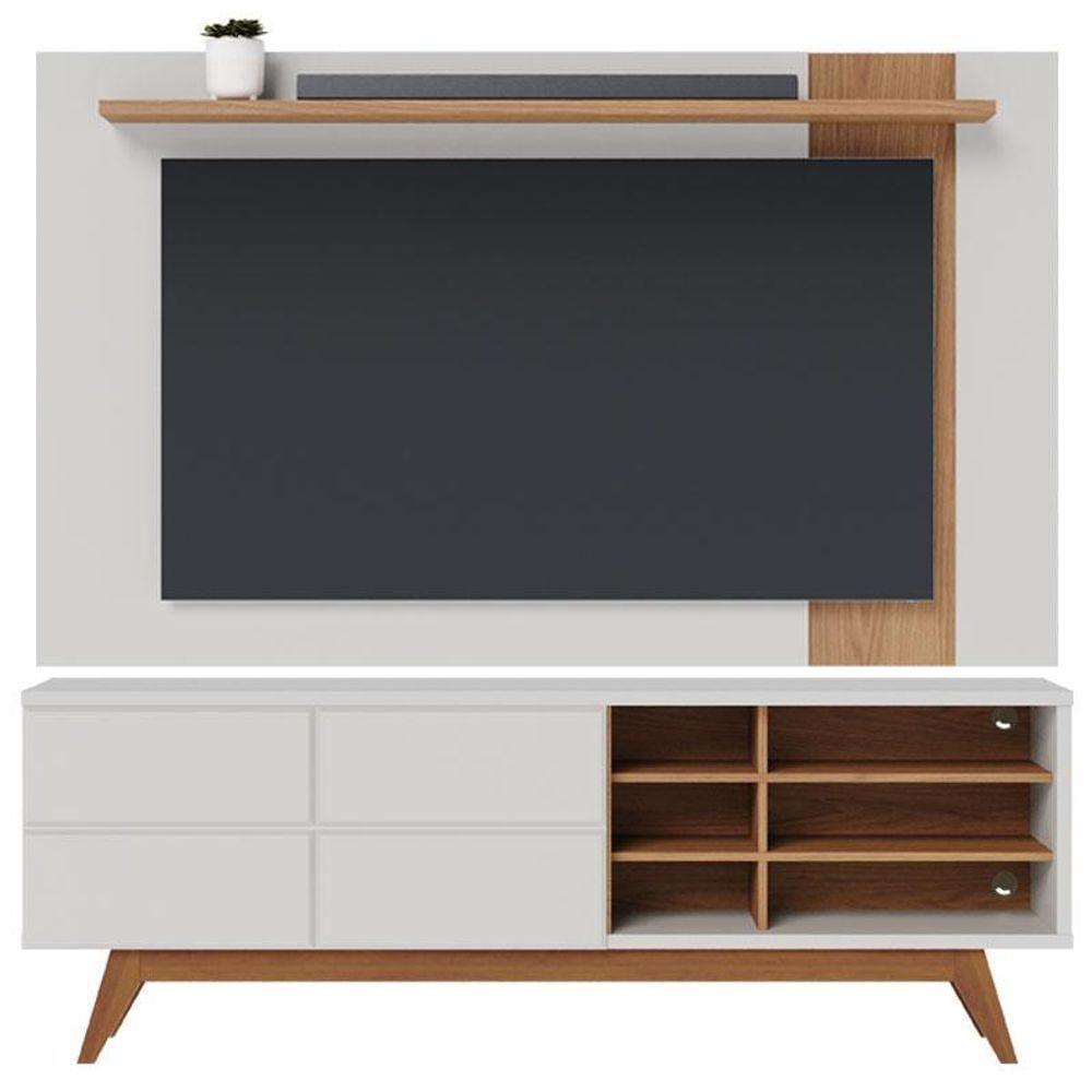Rack Bancada Noronha 1.8 Com Painel Para Tv Suspenso Extensivo Leme Off White Matte Freijó - Colibri