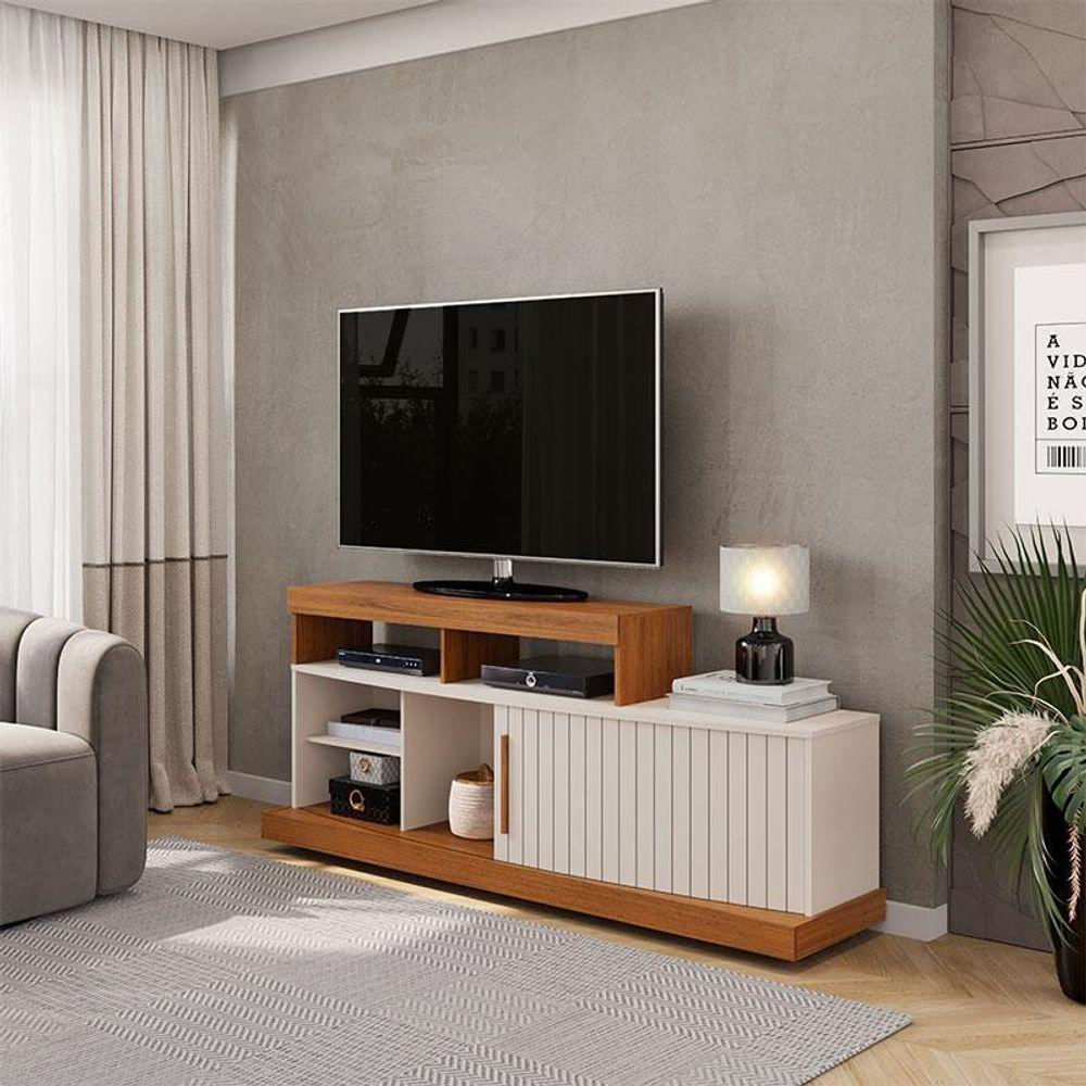 Rack Bancada Para Sala Ambiente Scala Freijó Off White – Dj Móveis