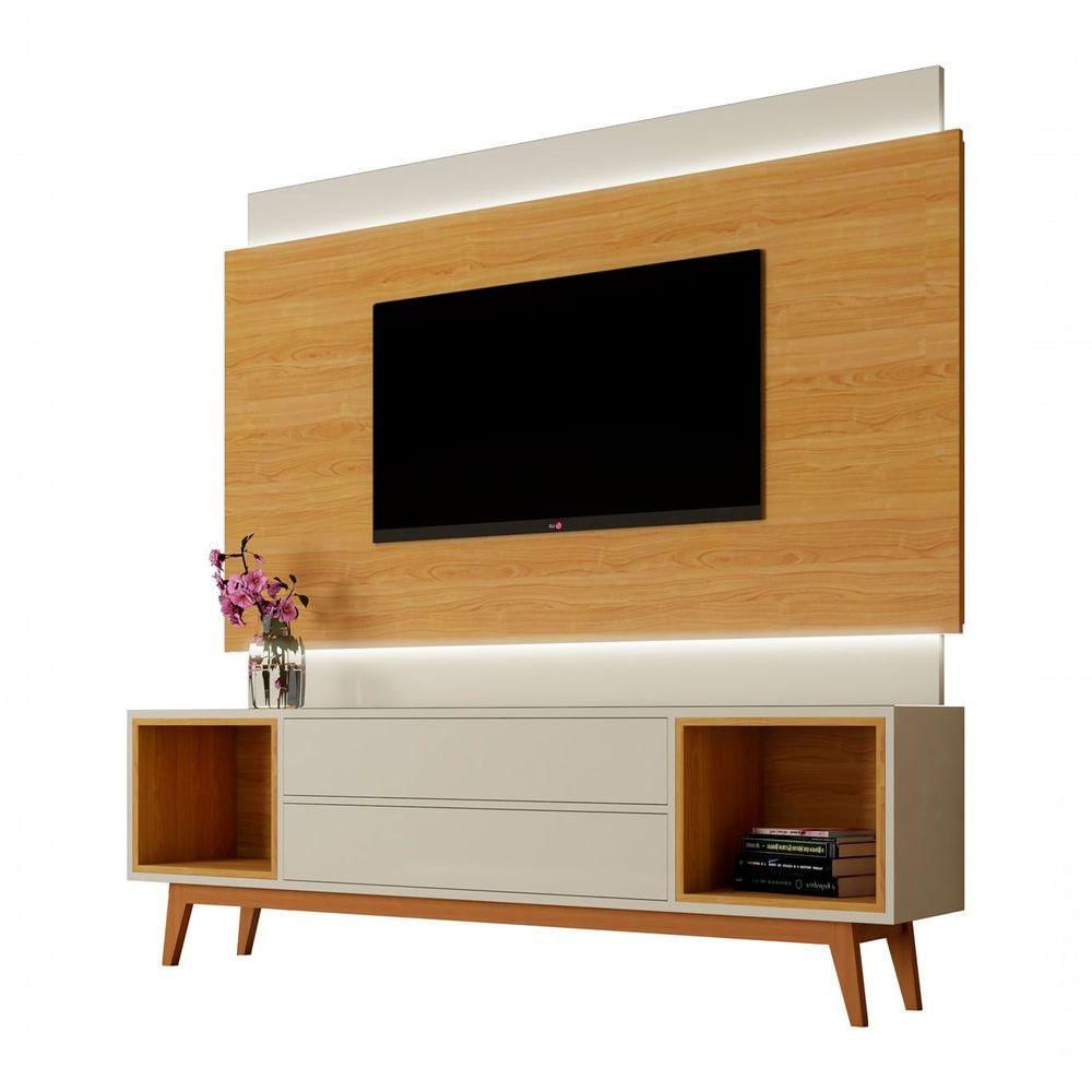 Rack Com Painel Horizon 1.8 Com Led Off White Com Nature - Moveisaqui