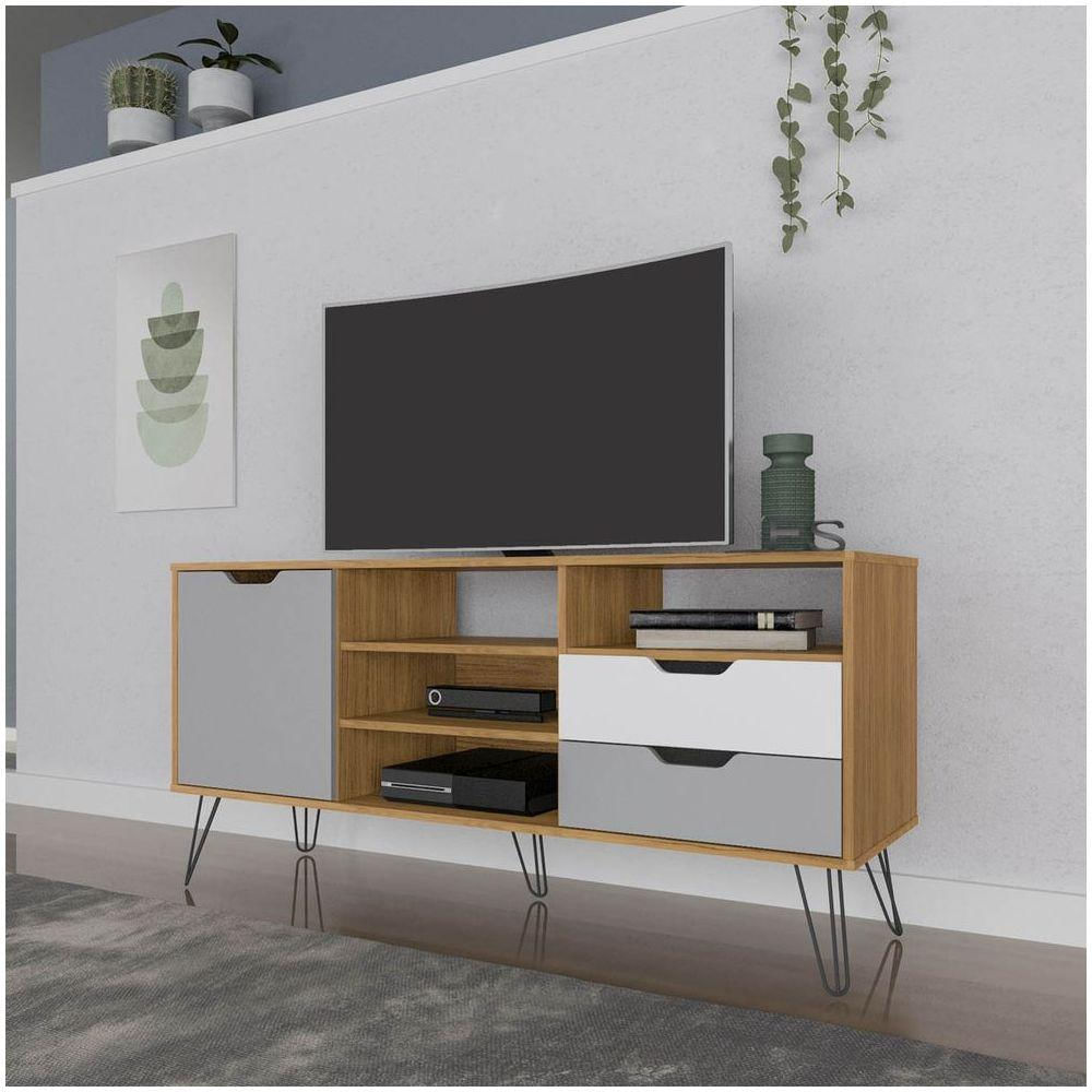 Rack Estocolmo Para Tvs De Até 60 Polegadas Com Pés De Madeira - Artely