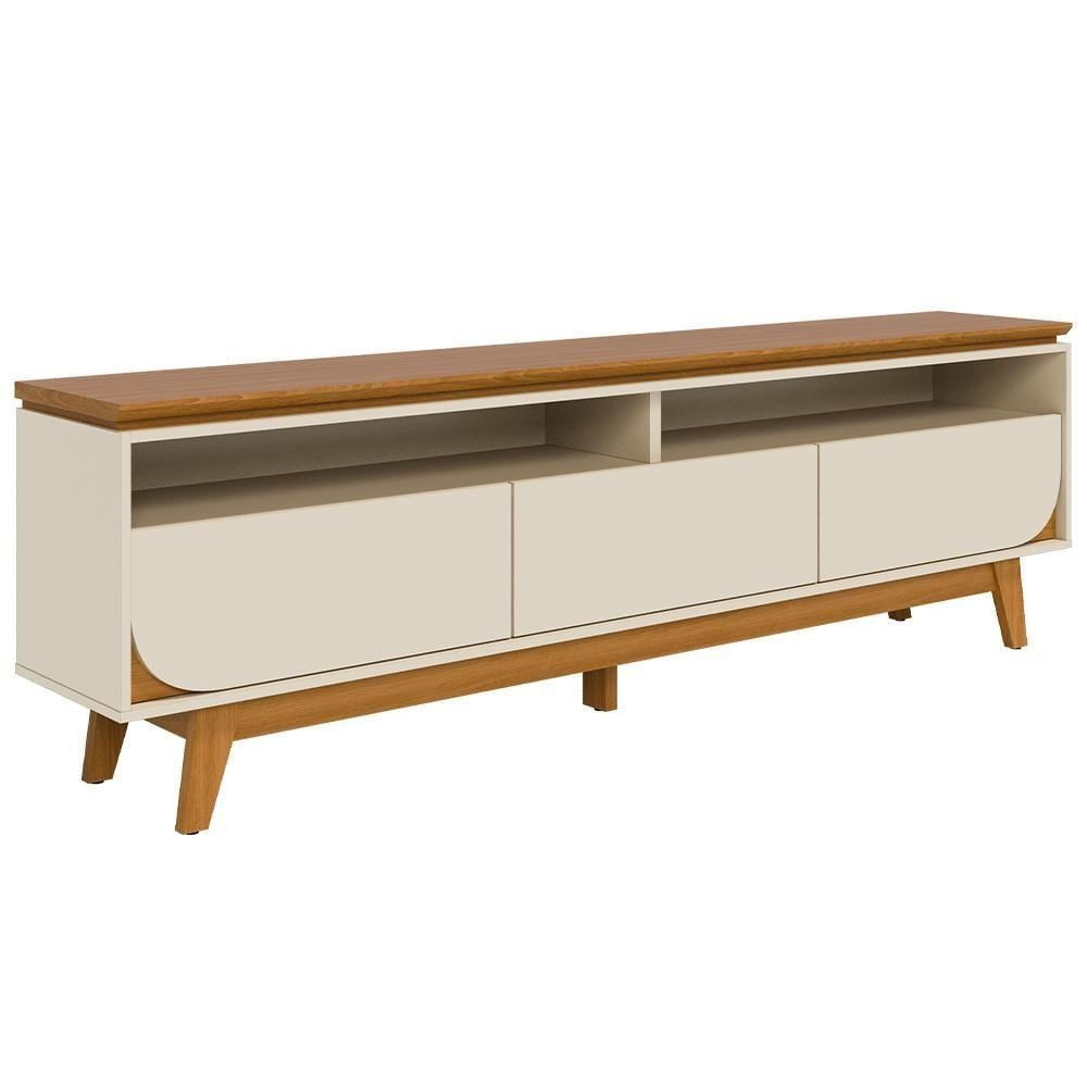 Rack Para Sala De Estar Tv 75 Pol 200cm Pés Retrô Milene M07 Cinamomo Off White - Lyam Decor