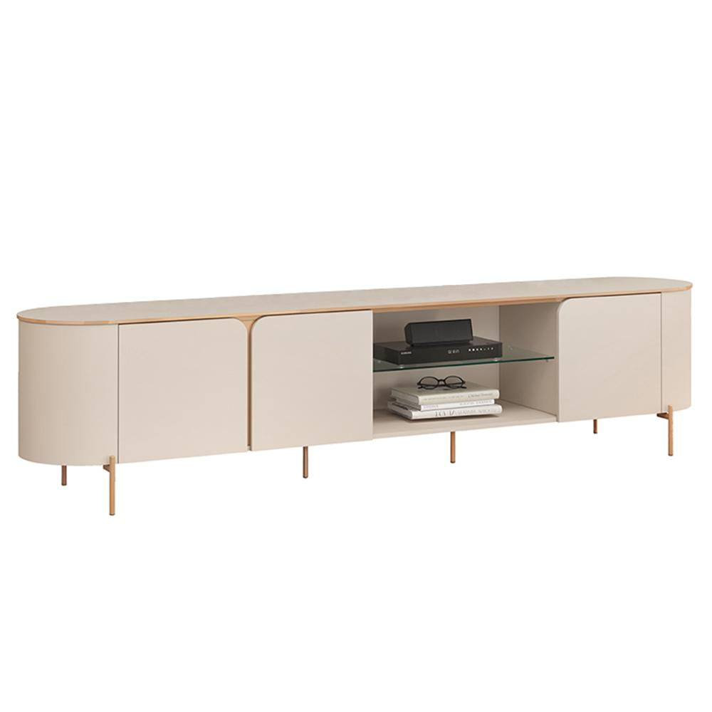 Descubra o equilíbrio perfeito entre estilo e funcionalidade com o elegante Rack Para Sala de Estar Harper, da Lyam Decor. Com um design orgânico que traz a suavidade dos cantos arredondados, essa bancada para sala é uma verdadeira obra-prima que transforma qualquer ambiente. Seus pés metálicos na sofisticada tonalidade dourada adicionam um toque de glamour, enquanto as três portas oferecem amplo espaço interno para acomodar seus itens essenciais.