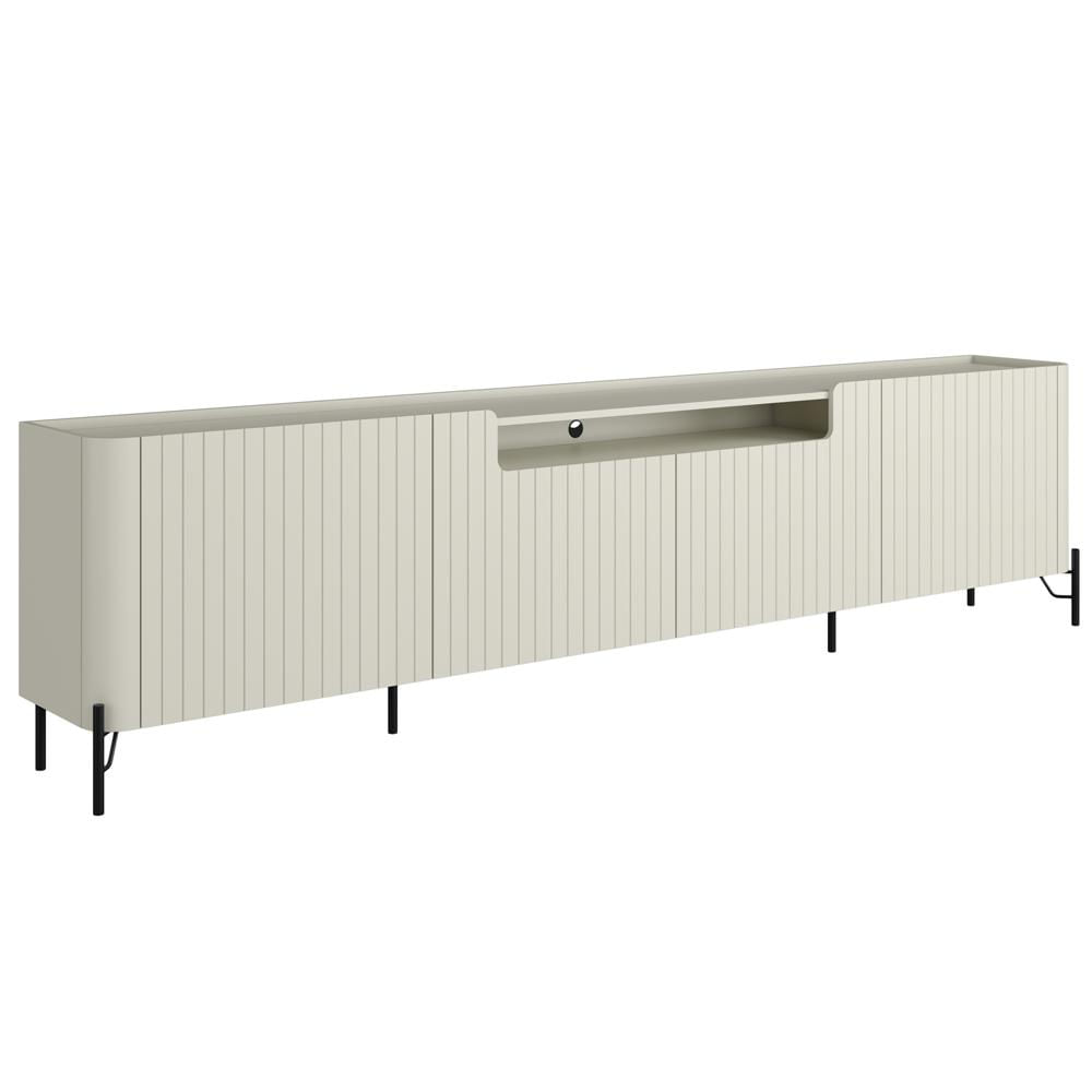 Com seus pés metálicos robustos e cantos suavemente arredondados, esse rack para TV traz personalidade à sua sala de estar, enquanto oferece uma organização inteligente para todos os seus equipamentos. Detalhe como o tampo levemente rebaixado no estilo bandeja garante segurança para sua TV, além de criar um visual clean e sofisticado. Por baixo, um amplo espaço interno com 4 portas brise mantém o ambiente livre de bagunça, enquanto o nicho exclusivo para aparelhos eletrônicos assegura ventilação adequada e fácil acesso. Enfim, seja em salas modernas ou ambientes rústicos, esse rack industrial orgânico impõe presença sem pesar visualmente, graças às suas linhas harmoniosas e acabamento impecável em MDF.