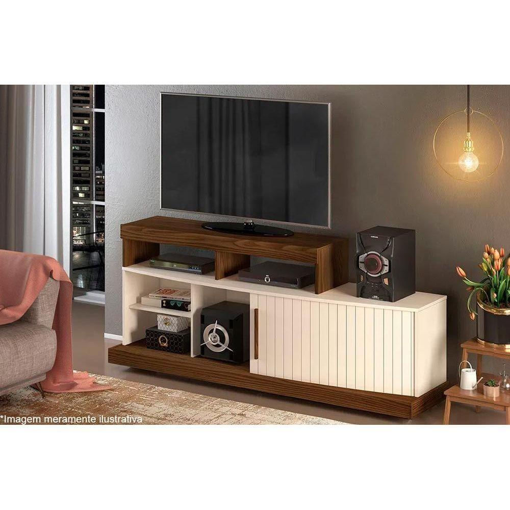 Rack Para Tv Scala Até 47 Polegadas C/ 1 Porta De Correr E 5 Nichos Marroquim/off White - Dj Móveis