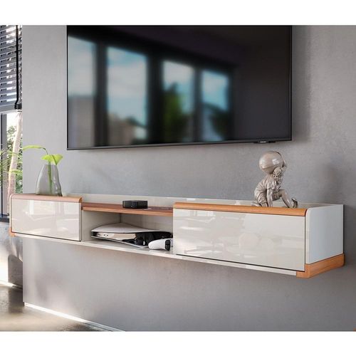 Rack Suspenso Atlas Sala De Estar/quarto - Lukaliam Móveis - Off White Perolizado/jequitiba