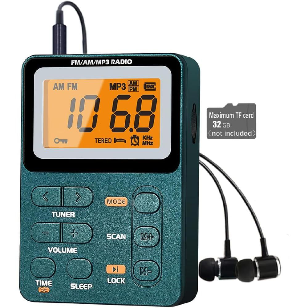 Rádio Portátil AM FM, Rádio de Bolso Recarregável com Sintonização Digital verde