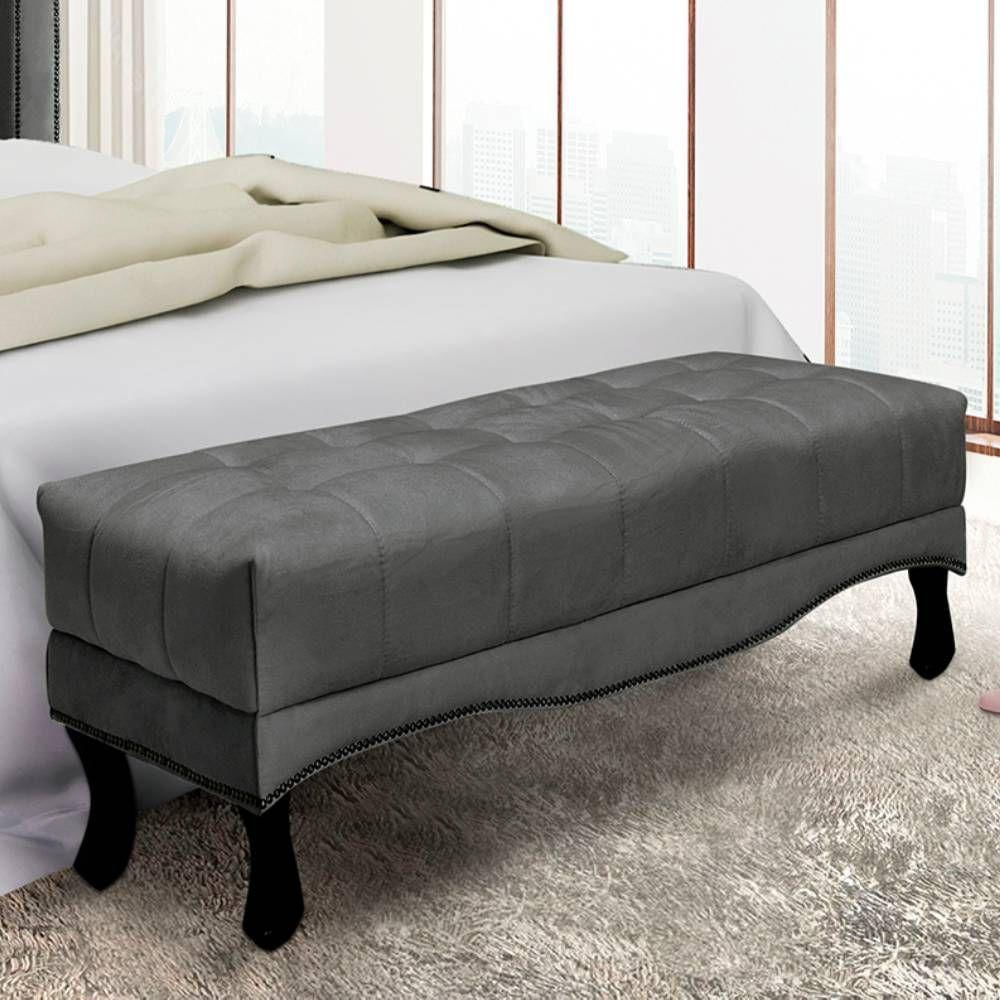 Recamier 0,90m Com Pés Luiz Xv E Acabamento Luxo Em Tecido Suede Vicenza - Lucadi Cinza