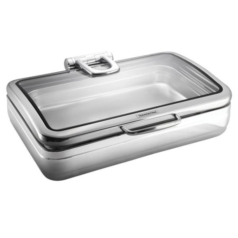 Rechaud Tramontina Banho Maria Retangular em Aço Inox com Tampa Basculante e Cuba 1/1 11,2 L