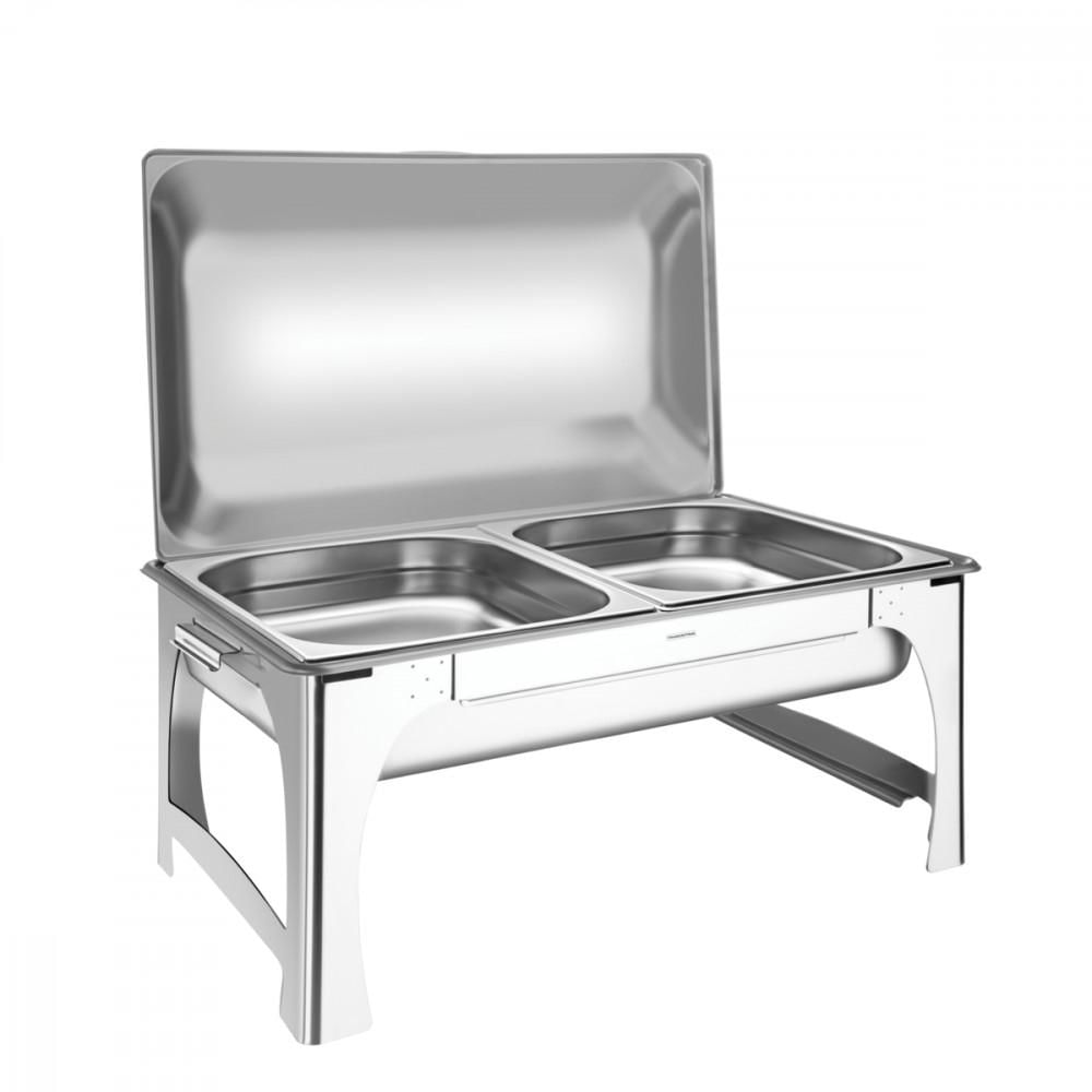 Rechaud Tramontina Retangular em Aço Inox Banho Maria Tampa Removível Cuba 1/2 8,4 L