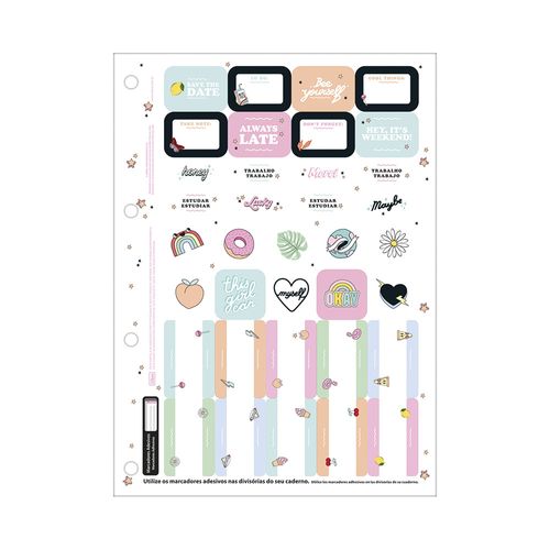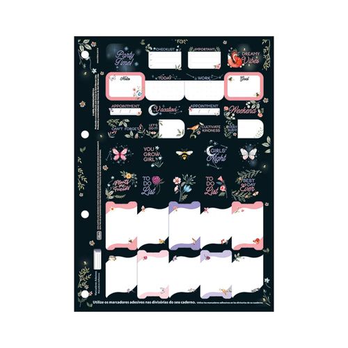 O Refil para Fichário Tilibra Capricho Branco 80 Folhas possui folha com adesivos funcionais e folhas pautadas decoradas coladas. Ideal para o dia a dia na escola ou na faculdade.