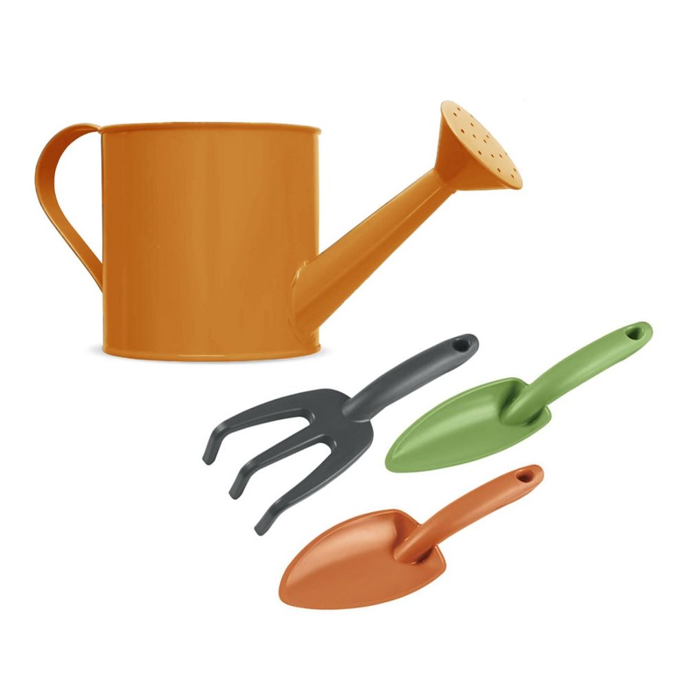 Regador de plantas e ferramentas para jardinagem. Ideal para usar na horticultura, fruticultura, jardinagem e serviços gerais. A pazinha larga é utilizada para cavar, remover e transportar a terra. A pazinha estreita é utilizada para cavar o solo e transplantar mudas. O ancinho é utilizado para afofar a terra e remover detritos. Se você gosta de ter um pedacinho de natureza na sua casa e precisa de ferramentas leves e compactas para plantar suas flores, hortaliças, temperos e frutas, você irá adorar o conjunto para jardinagem Tramontina. São ferramentas resistentes e coloridas que irão auxiliar no momento de cavar, arar e afofar a terra para plantar ou retirar mudas. As ferramentas são fabricadas em polipropileno de alta resistência, proporcionando maior durabilidade e ótimo acabamento. Os cabos possuem formato ergonômico, assegurando mais conforto durante o uso. O regador é otimo para manter as plantas sempre bem cuidadas com mais praticidade e economia de agua. O regador de jardim indicado para ambientes externos e internos, perfeito para regar arvores, plantas, canteiros e vasos.