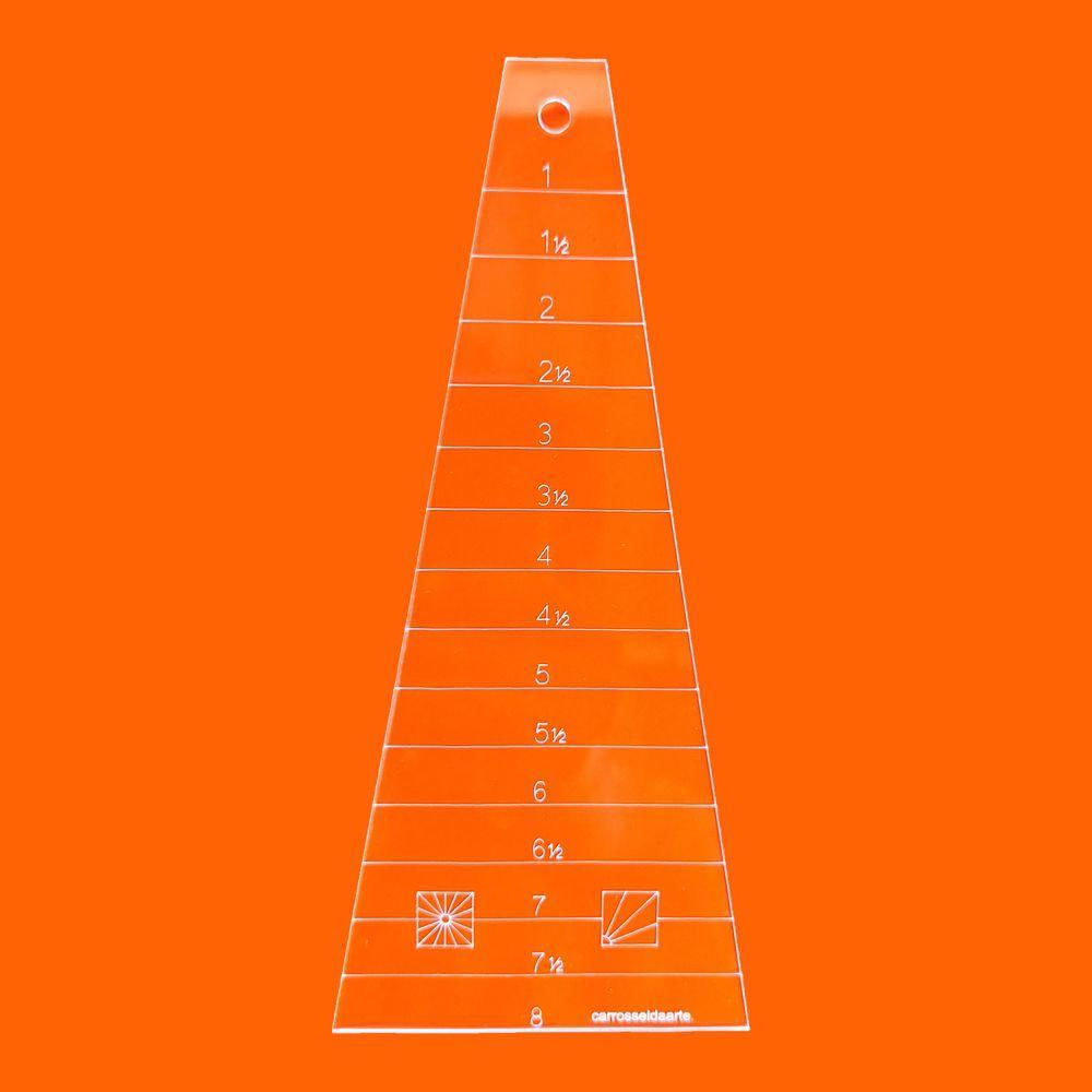 Régua para Patchwork Dresden 20º polegada Marcações em polegadas Régua criada para uso de técnica de dresden 20 graus, para desenvolver marcações para corte de flor e pétalas. Tamanho de Pétala de 1 a 8 polegadas Tamanho da Flor de 2,5 a 16 polegadas Esta Régua facilita o corte e marcação precisos das pétalas em diversas medidas no tecido. Ideal para Patchwork, Scrapbook. Material: Acrílico Virgem Cor: Cristal transparente Espessura: 2 mm Régua gravados a laser, que nunca vão ser apagadas.
