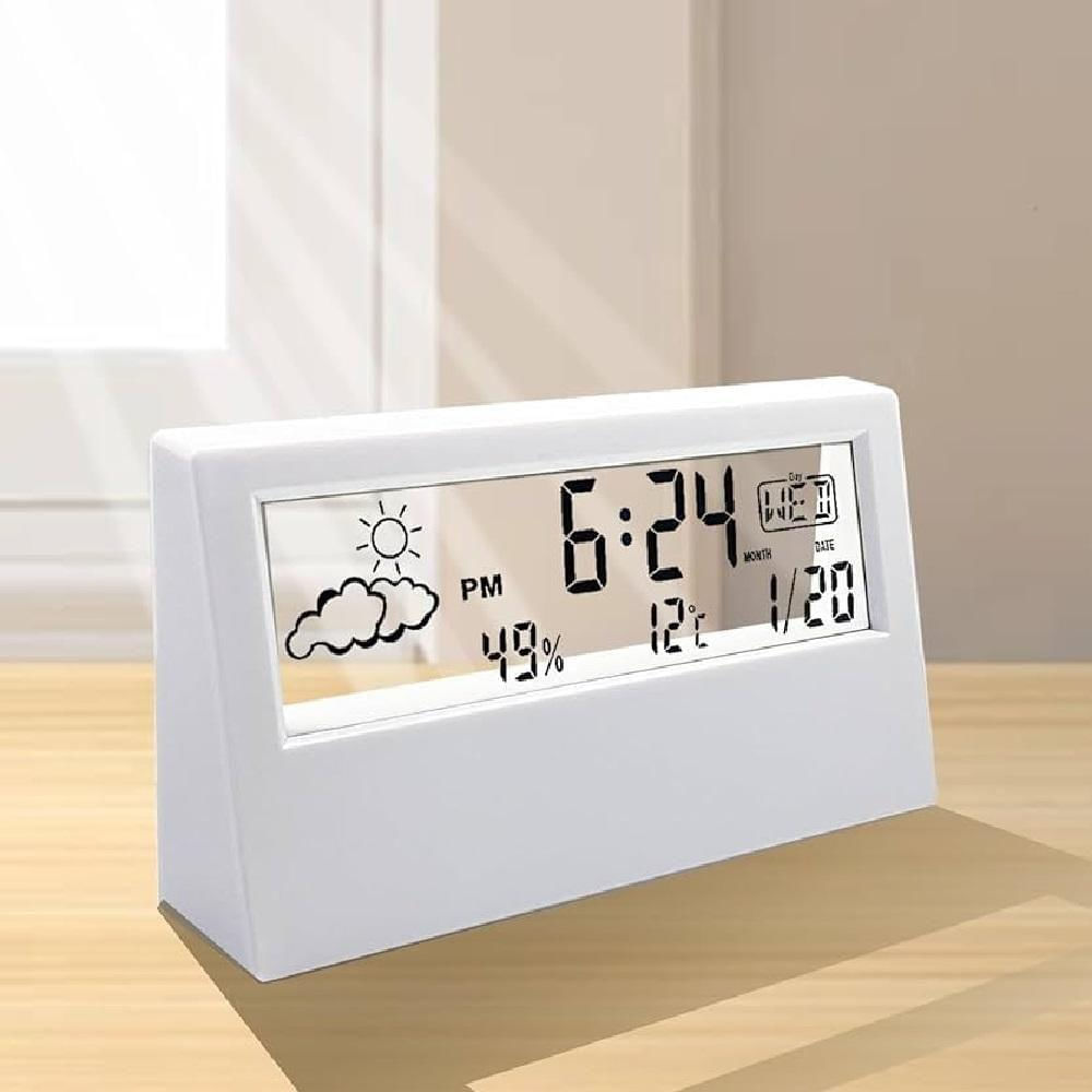 Relógio De Mesa Despertador Digital Multifunção Tela Transparente Lcd Iluminada Sensor Clima Temperatura Umidade Branco