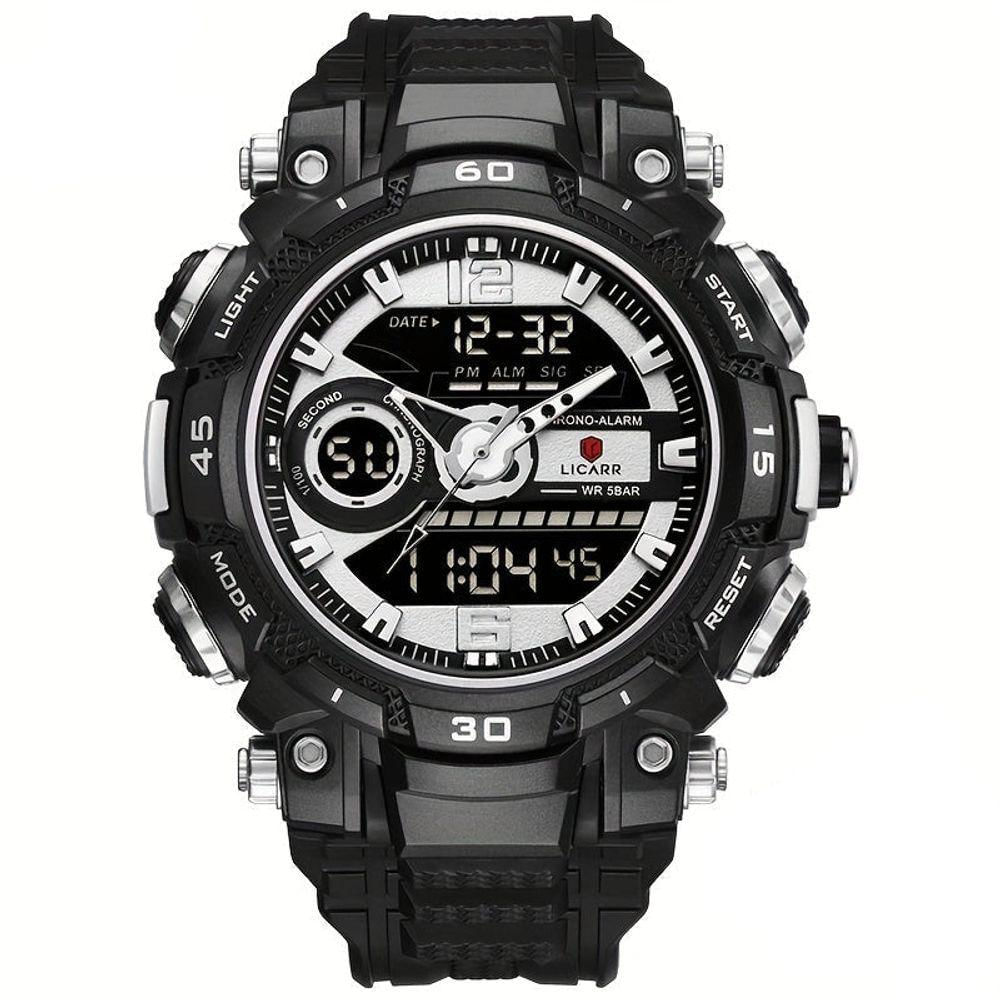 Relógio De Pulso Masculino Digital Led Multifuncional Desportivo De Quartzo Prateado Preto A